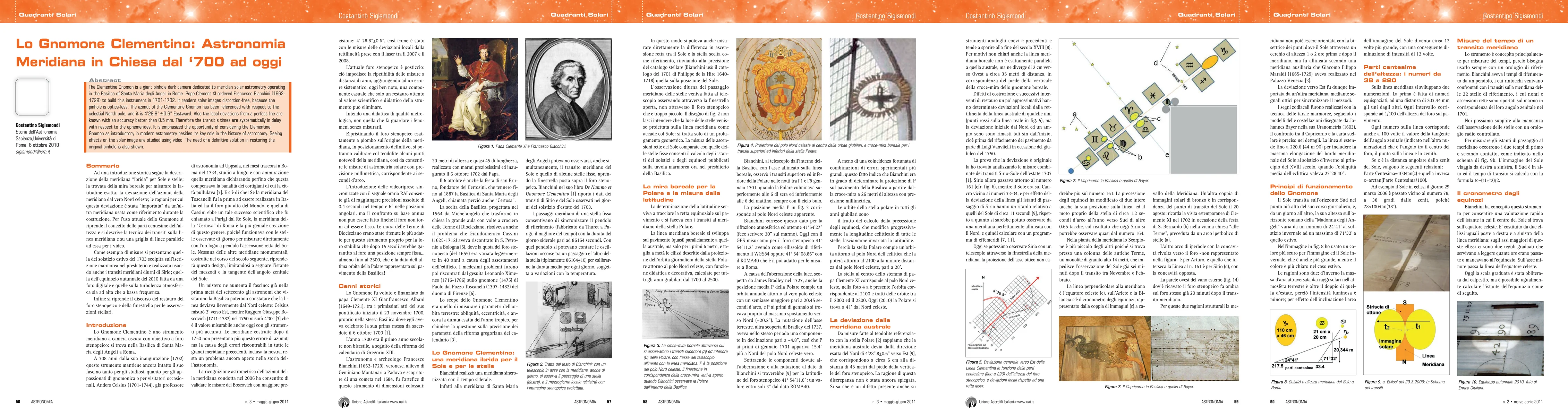The Clementine Gnomon is a giant pinhole dark camera dedicated to meridian solar astrometry operating in the Basilica of Santa Maria degli Angeli in Rome. Pope Clement XI ordered Francesco Bianchini (1662-1729) to build this instrument in 1701-1702. It renders solar images distortion-free, because the pinhole is optics-less. The azimut of the Clementine Gnomon has been referenced with respect to the celestial North pole, and it is 4'28.8"\pm0.6" Eastward. Also the local deviations from a perfect line are known with an accuracy better than 0.5 mm. Therefore the transit's times are systematically in delay with respect to the ephemerides. It is emphasized the opportunity of considering the Clementine Gnomon as introductory in modern astrometry besides its key role in the history of astronomy. Seeing effects on the solar image are studied using video. The need of a definitive solution in restoring the original pinhole is also shown.
