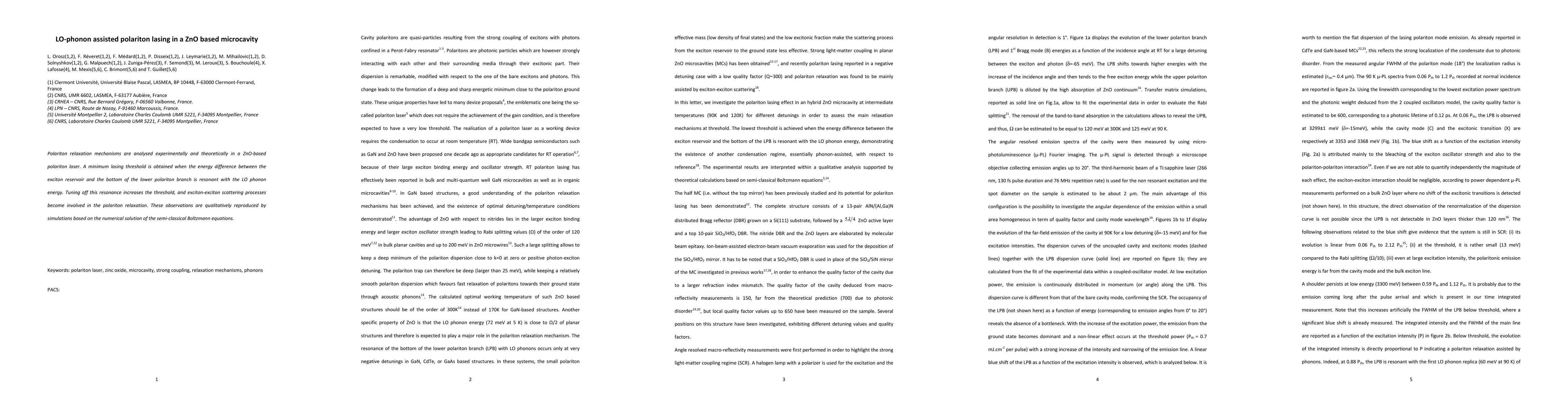 This paper investigates the role of LO-phonon assisted relaxation in ZnO-based polariton lasers, finding that a minimum lasing threshold occurs when the energy difference between the exciton reservoir and the lower polariton branch matches the LO phonon energy. Deviations from this resonance increase the threshold, involving exciton-exciton scattering, with results corroborated by semi-classical Boltzmann equation simulations.