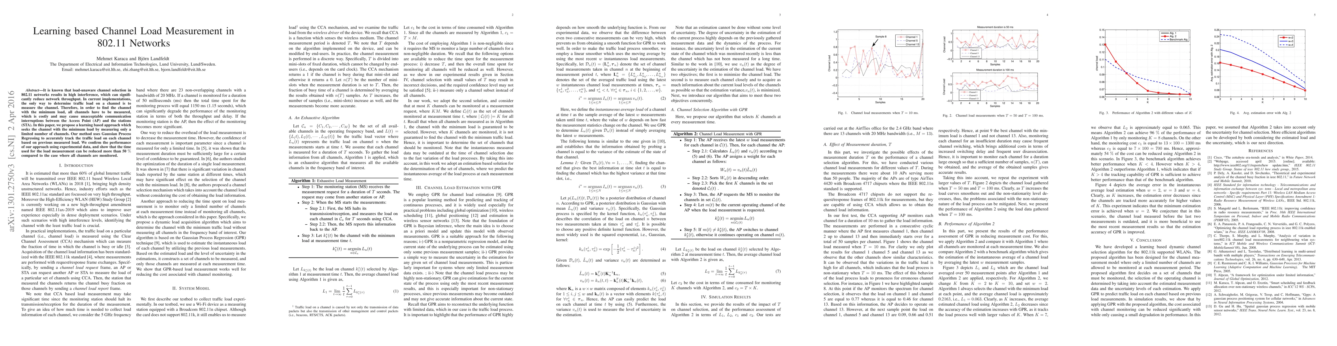 A new method using Gaussian Process Regressing is proposed to minimize load-aware channel selection in 802.11 networks, reducing measurement time by up to 46%.