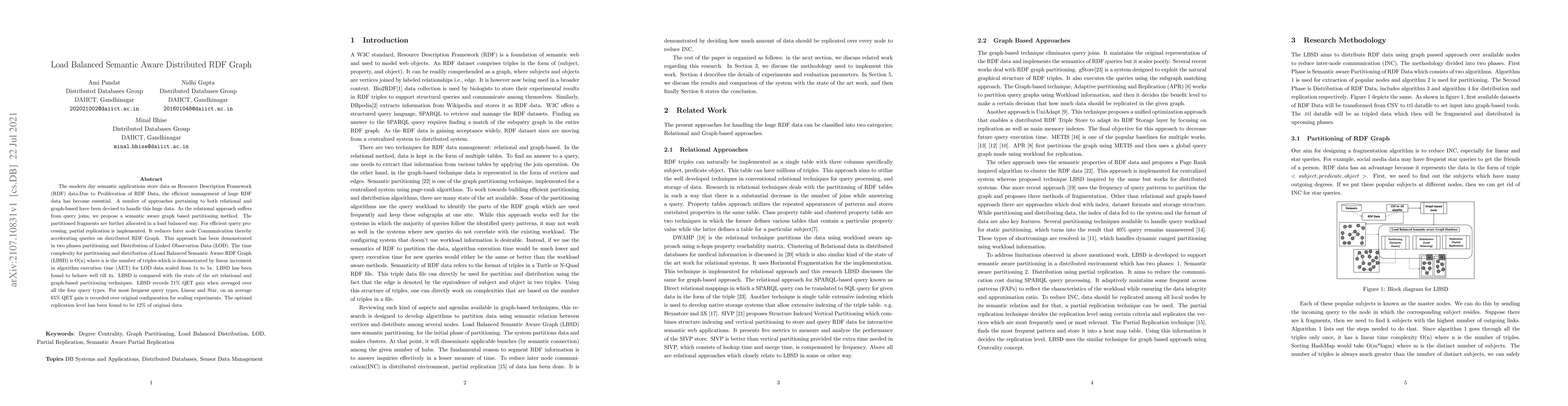 This paper proposes a semantic aware, load balanced partitioning method for efficiently managing large RDF data. The approach balances load and reduces inter-node communication through partial replication, demonstrating a time complexity of O(n) and achieving up to 71% query execution time gain over existing techniques.