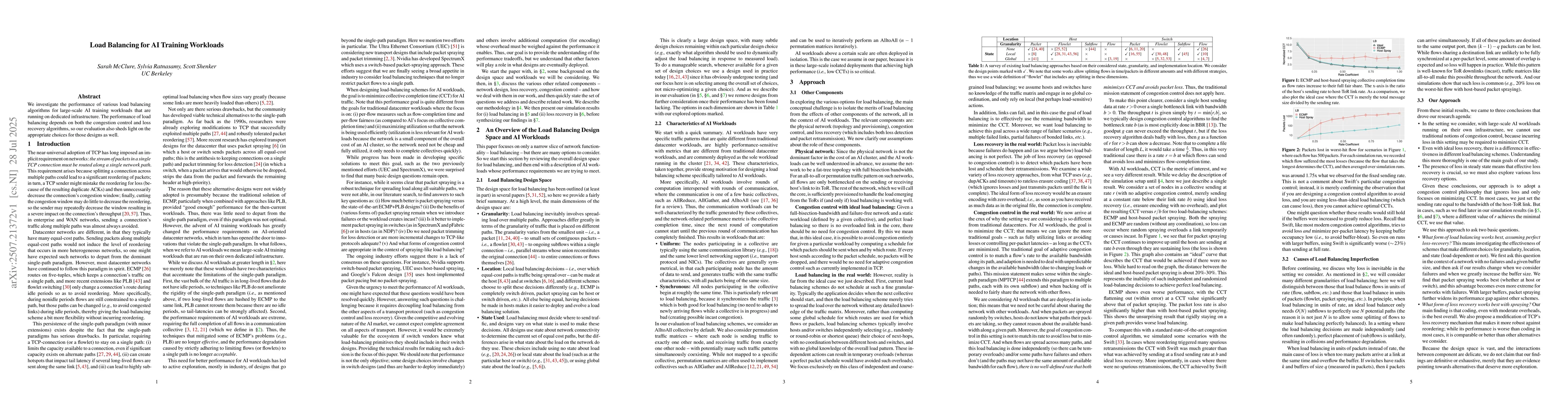 We investigate the performance of various load balancing algorithms for large-scale AI training workloads that are running on dedicated infrastructure. The performance of load balancing depends on both the congestion control and loss recovery algorithms, so our evaluation also sheds light on the appropriate choices for those designs as well.