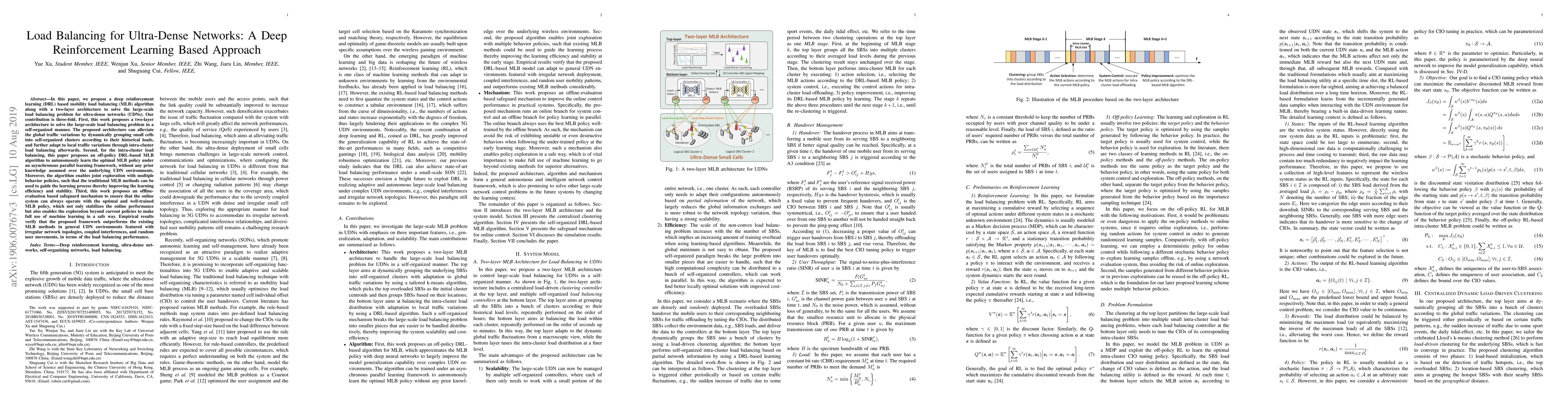 This paper proposes a deep reinforcement learning (DRL) based mobility load balancing algorithm within a two-layer architecture to address large-scale load balancing in ultra-dense networks. The framework dynamically clusters small cells and employs an off-policy DRL method for intra-cluster load balancing, ensuring optimal performance and stability.