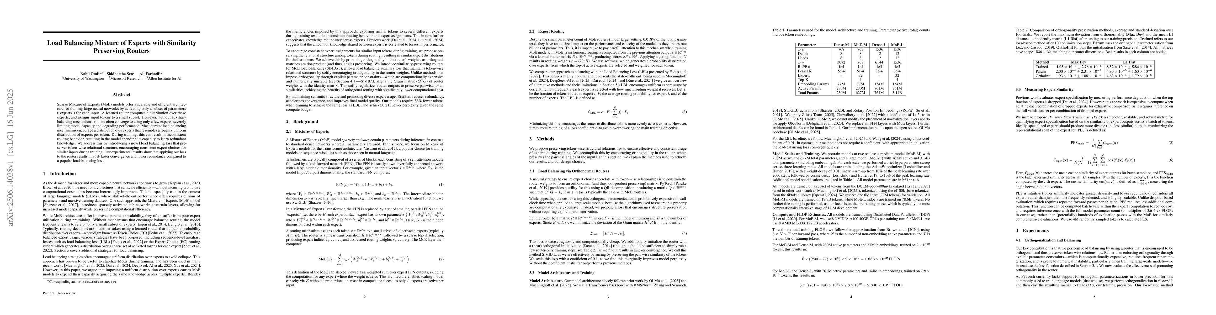 Sparse Mixture of Experts (MoE) models offer a scalable and efficient architecture for training large neural networks by activating only a subset of parameters ("experts") for each input. A learned router computes a distribution over these experts, and assigns input tokens to a small subset. However, without auxiliary balancing mechanisms, routers often converge to using only a few experts, severely limiting model capacity and degrading performance. Most current load balancing mechanisms encourage a distribution over experts that resembles a roughly uniform distribution of experts per token. During training, this can result in inconsistent routing behavior, resulting in the model spending its capacity to learn redundant knowledge. We address this by introducing a novel load balancing loss that preserves token-wise relational structure, encouraging consistent expert choices for similar inputs during training. Our experimental results show that applying our loss to the router results in 36% faster convergence and lower redundancy compared to a popular load balancing loss.