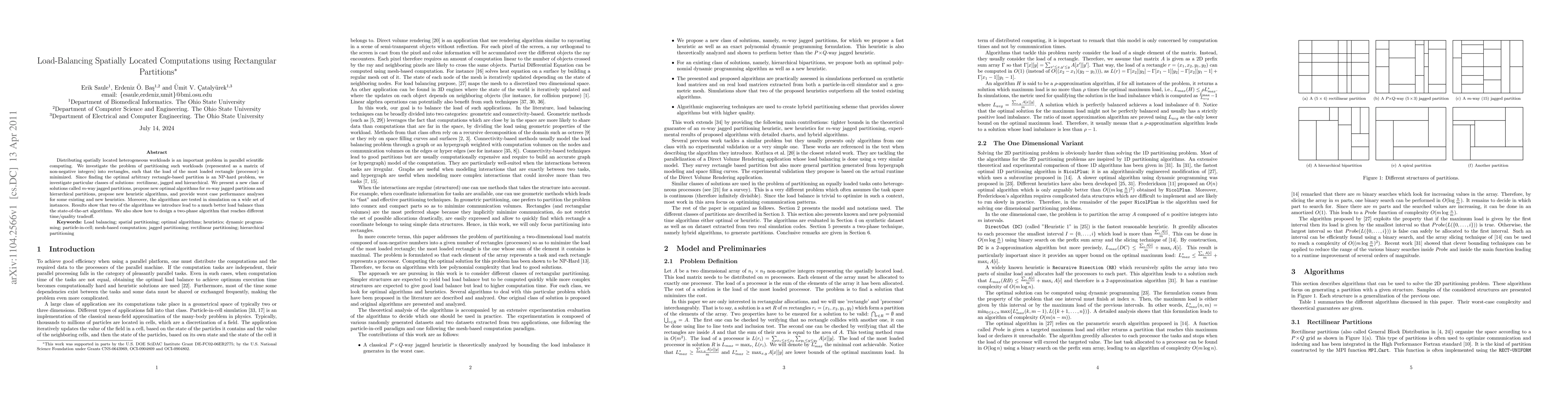 This paper proposes new algorithms for partitioning spatially located workloads into rectangular partitions to minimize load imbalance. It introduces optimal algorithms for m-way jagged and hierarchical partitions and presents new heuristics, showing through simulations that two of the new algorithms outperform existing methods in achieving better load balance.