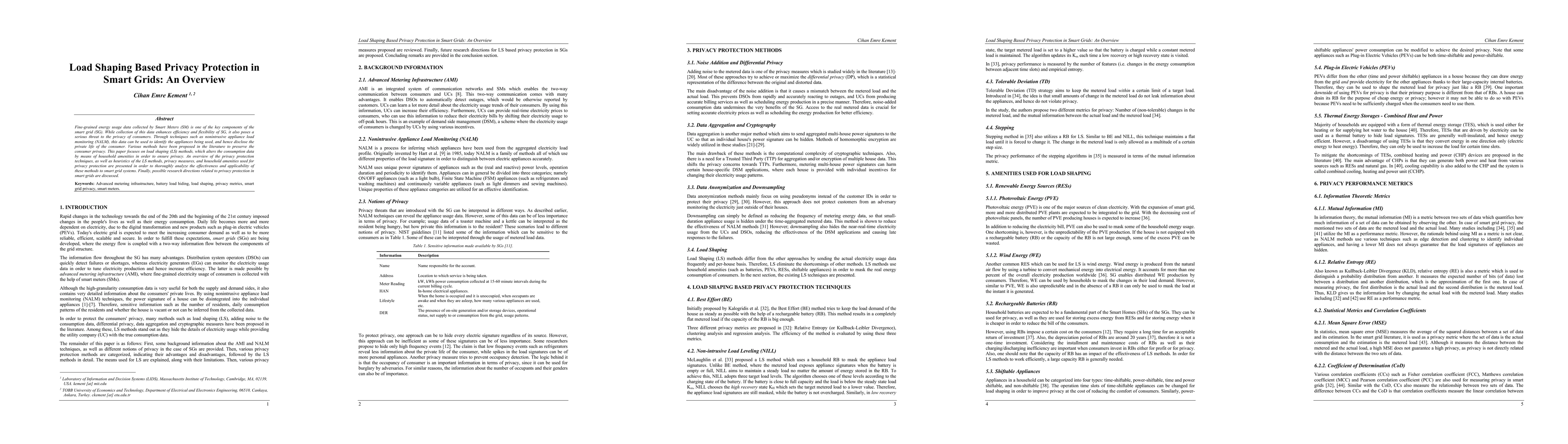 This paper provides an overview of privacy protection techniques in smart grids, focusing on load shaping methods that alter consumption data to safeguard consumer privacy. It analyzes various load shaping techniques, heuristics, and privacy measures, and discusses future research directions for enhancing privacy in smart grid systems.