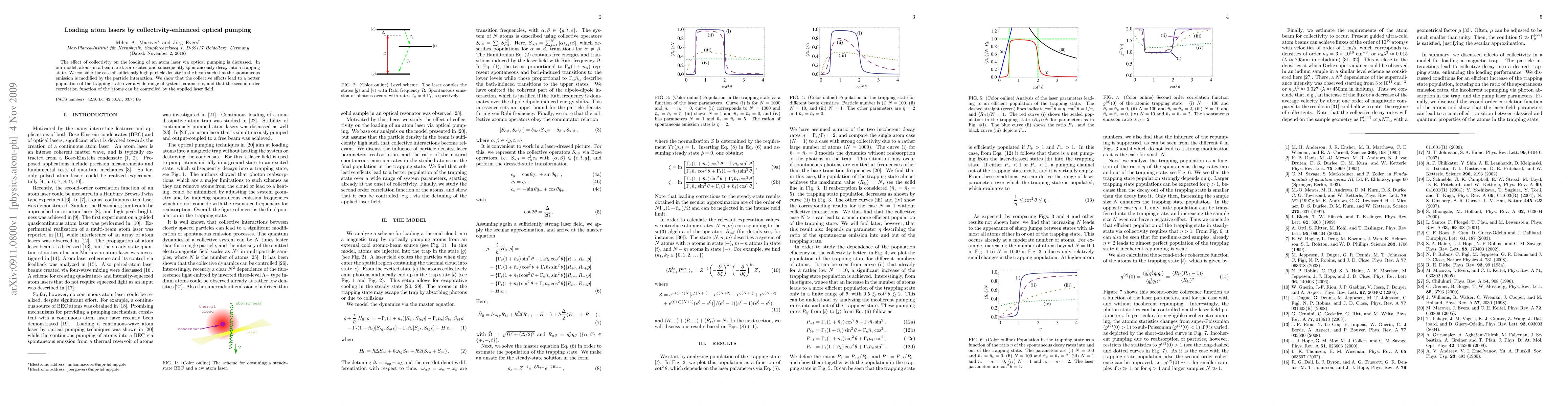 The effect of collectivity on the loading of an atom laser via optical pumping is discussed. In our model, atoms in a beam are laser-excited and subsequently spontaneously decay into a trapping state. We consider the case of sufficiently high particle density in the beam such that the spontaneous emission is modified by the particle interaction. We show that the collective effects lead to a better population of the trapping state over a wide range of system parameters, and that the second order correlation function of the atoms can be controlled by the applied laser field.