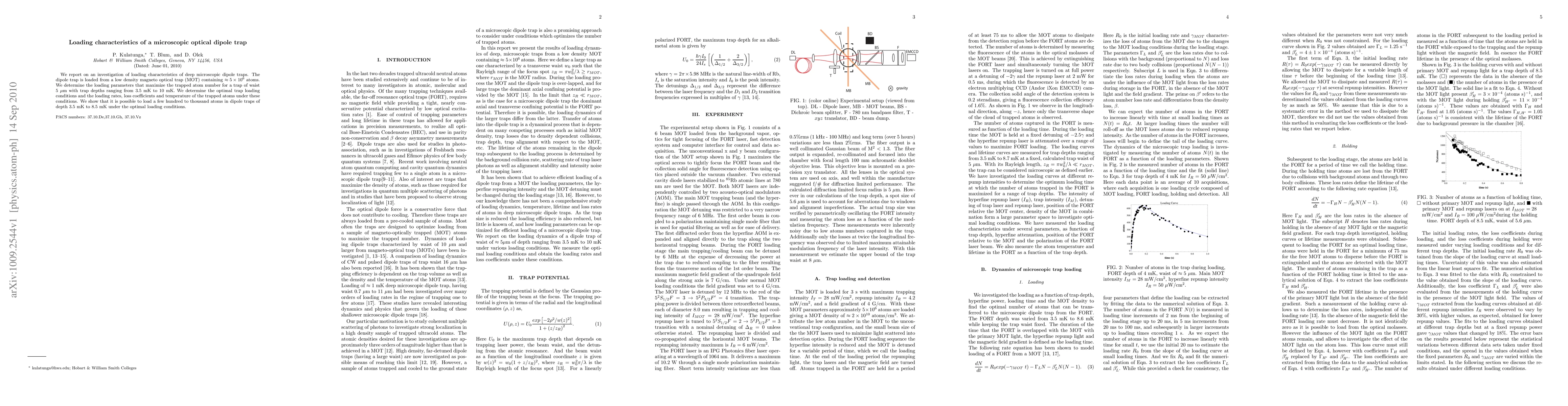 This paper investigates the loading characteristics of microscopic optical dipole traps, determining optimal conditions to maximize trapped atom numbers from a low-density magneto-optical trap. It finds that under optimal conditions, a few hundred to a thousand atoms can be loaded into traps with depths ranging from 3.5 mK to 8.5 mK.