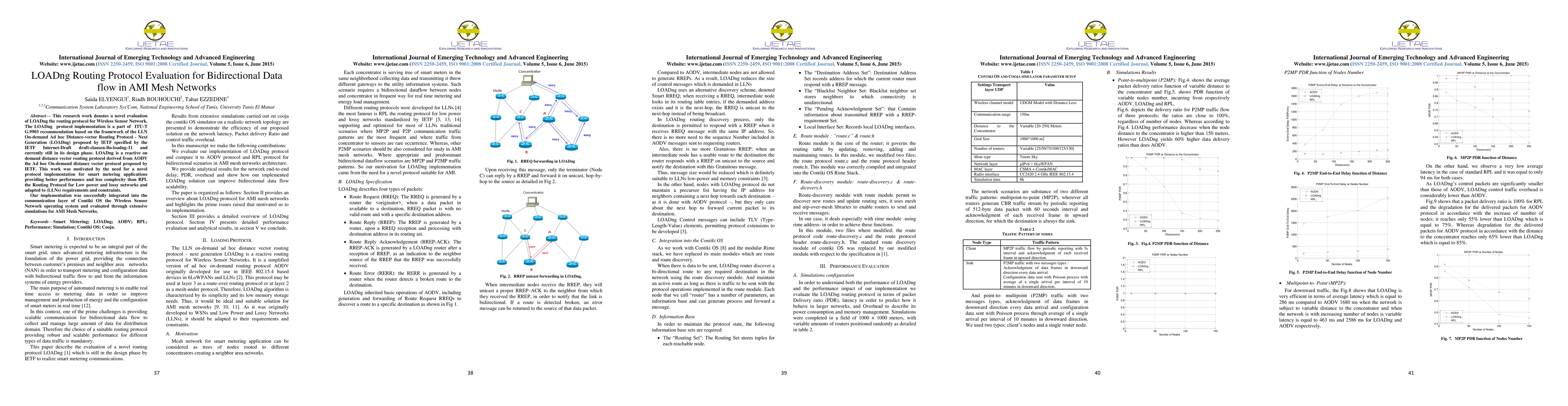 This research evaluates the LOADng routing protocol for Wireless Sensor Networks, specifically for smart metering applications in AMI Mesh Networks. The study integrates LOADng into the Contiki OS and assesses its performance through extensive simulations, aiming for better efficiency and lower complexity compared to RPL.