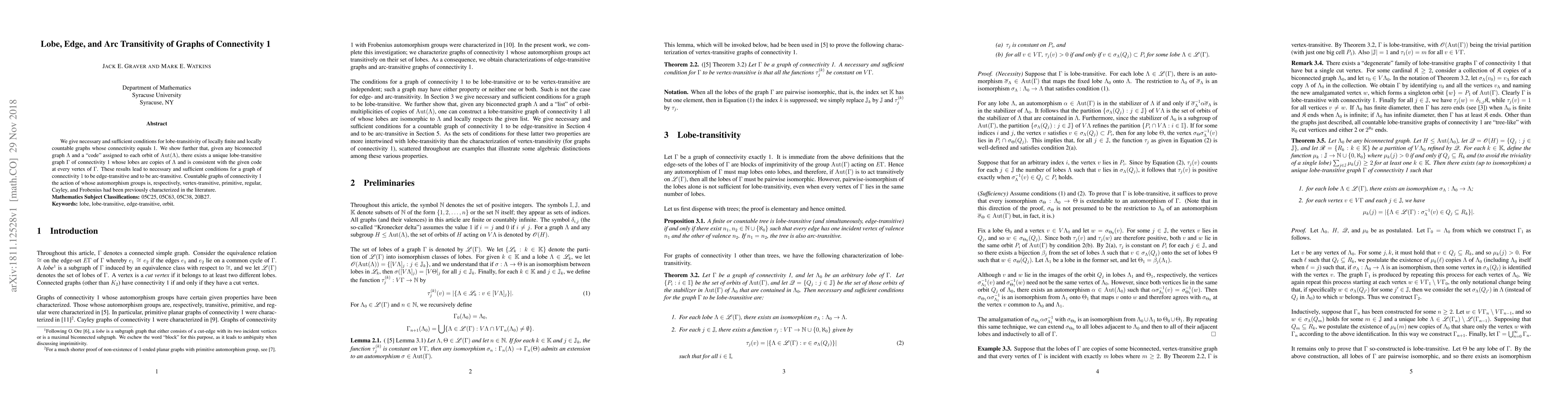 The paper establishes a unique correspondence between biconnected graphs and lobe-transitive graphs of connectivity 1, extending previous work on vertex-transitive graphs.