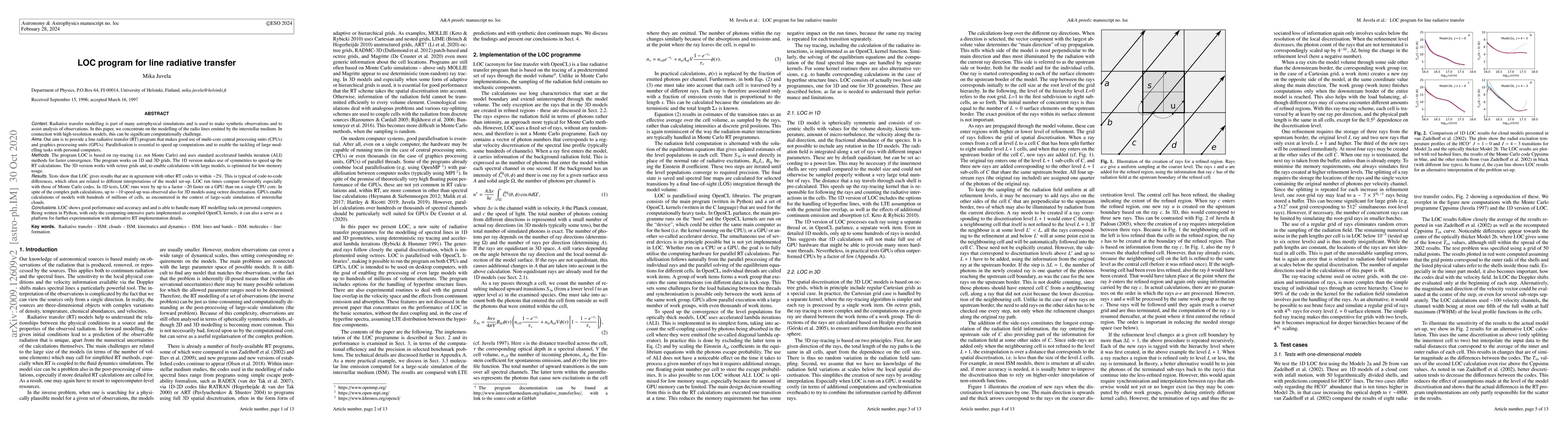 The LOC program efficiently models line radiative transfer using ray-tracing and accelerated lambda iteration, optimized for multi-core CPUs and GPUs. It demonstrates significant speed-up in both 1D and 3D grid calculations, enabling large-scale simulations of interstellar clouds on personal computers.