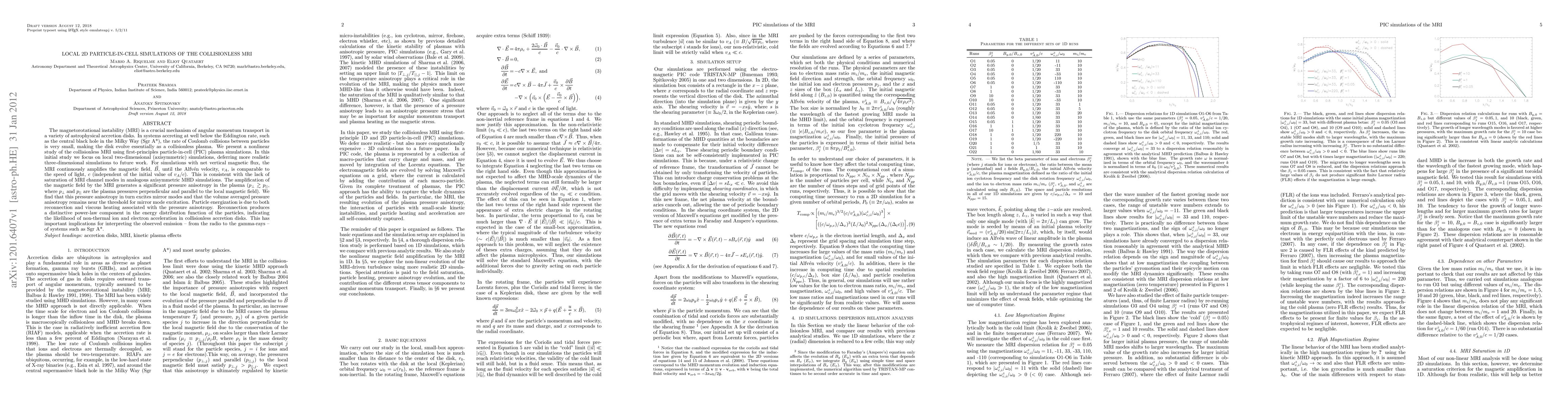 This paper presents local 2D particle-in-cell simulations of the collisionless magnetorotational instability (MRI) in astrophysical accretion disks, showing that MRI amplifies magnetic fields and generates significant pressure anisotropy, leading to mirror mode excitation and non-thermal particle acceleration. These findings have implications for interpreting the multi-wavelength emissions from systems like Sgr A*.
