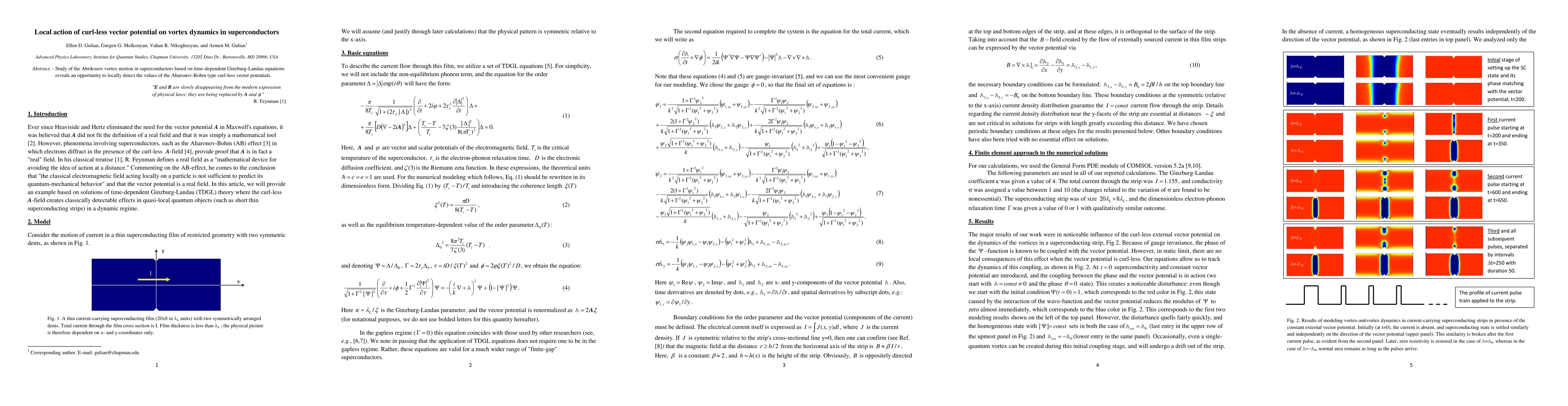 Study of the Abrikosov vortex motion in superconductors based on time-dependent Ginzburg-Landau equations reveals an opportunity to locally detect the values of the Aharonov-Bohm type curl-less vector potentials.
