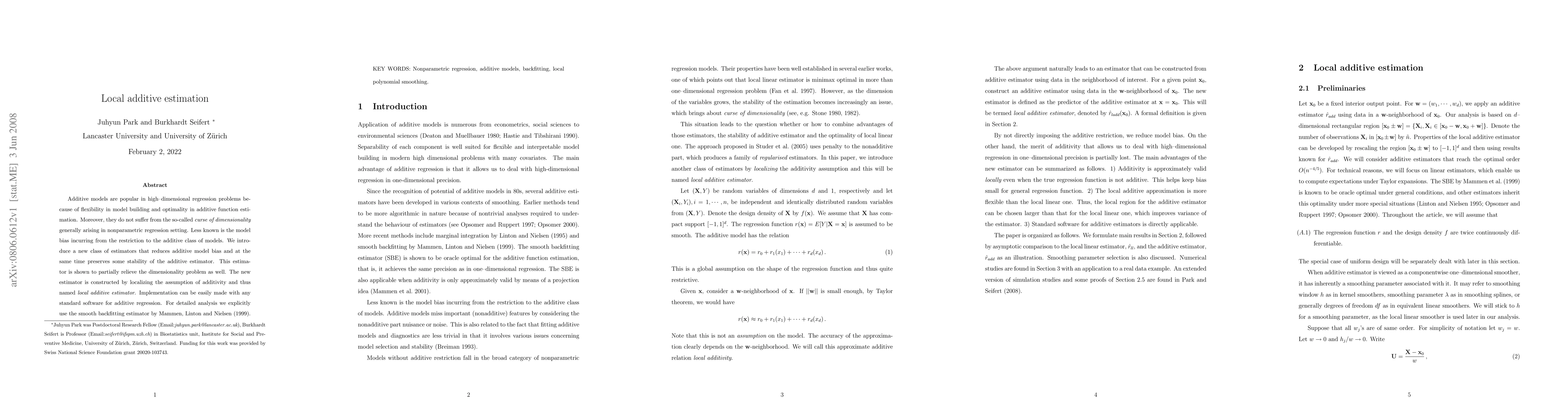 A new estimator called local additive estimator is introduced to reduce bias in additive models, which are commonly used for high-dimensional regression problems. This estimator partially relieves the dimensionality problem while preserving stability.