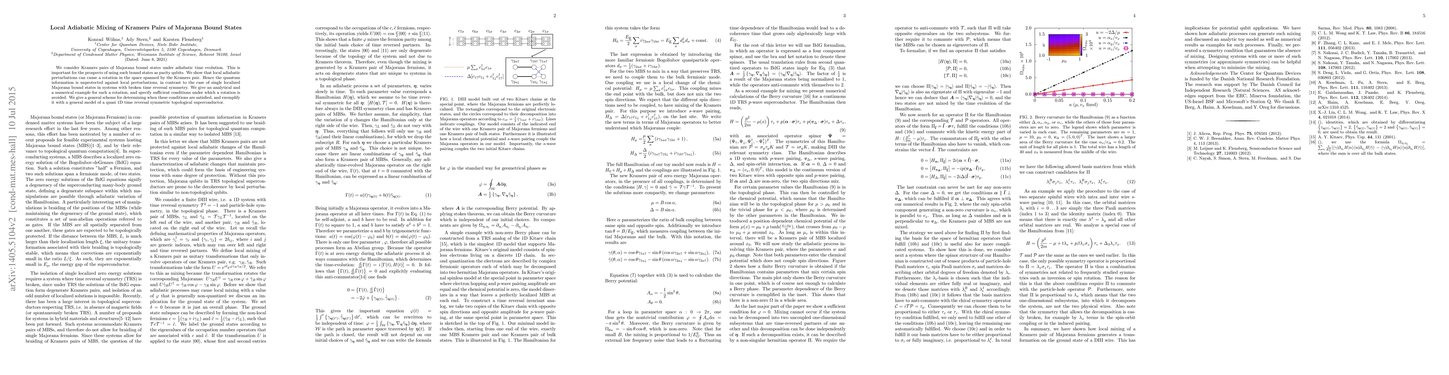This paper investigates the impact of local adiabatic perturbations on Kramers pairs of Majorana bound states, revealing that such perturbations can cause a rotation in the quantum state, thus compromising the protection of quantum information. It provides analytical and numerical examples, and outlines conditions and a general scheme to avoid these rotations in quasi 1D topological superconductors.