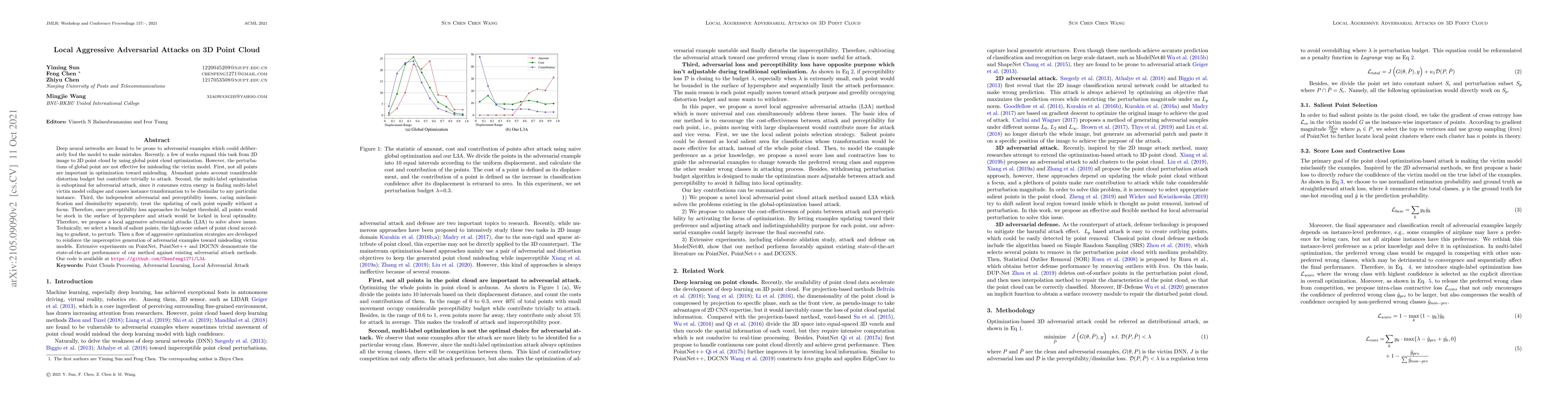 This paper proposes a local aggressive adversarial attack (L3A) method to improve adversarial attacks on 3D point clouds. Unlike global point cloud optimization, L3A targets salient points identified by gradient importance, optimizing them aggressively to mislead models while minimizing perceptibility, achieving state-of-the-art performance against existing methods.