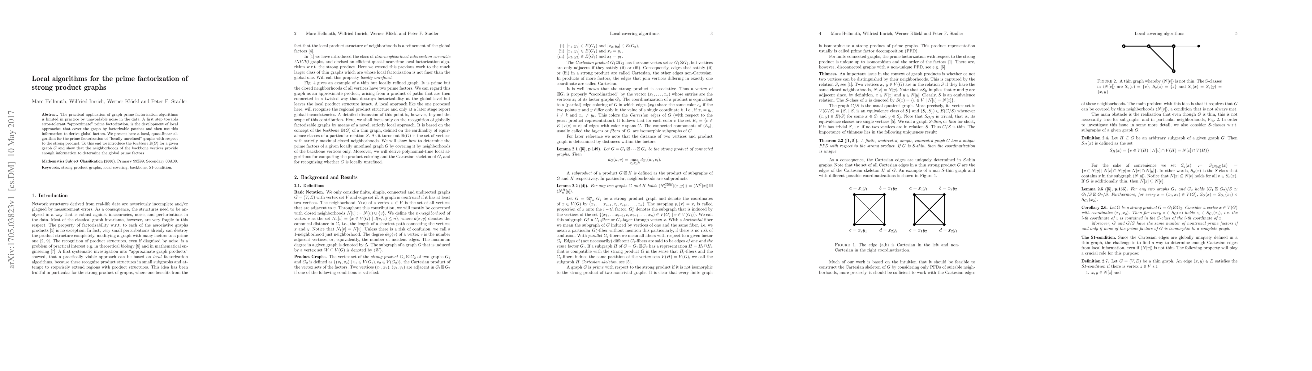 This paper introduces a local, quasi-linear algorithm for prime factorization of "locally unrefined" graphs via the strong product, utilizing the backbone B(G) and its neighborhoods to derive global factors, aiming for error-tolerant approximate factorization.