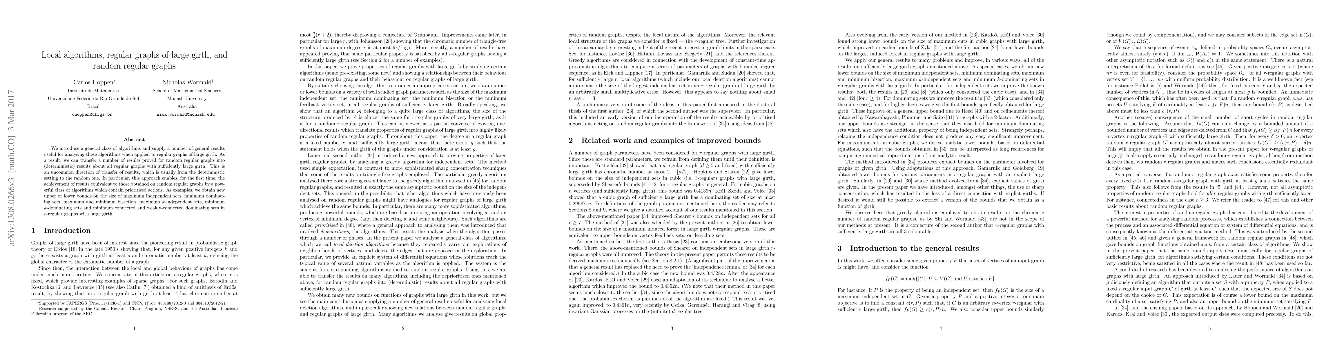 This paper presents a new class of local algorithms and general results for analyzing them on regular graphs with large girth, enabling the transfer of findings from random regular graphs to deterministic settings. It achieves results on various graph properties, such as independent sets and bisections, for $r$-regular graphs with sufficiently large girth.