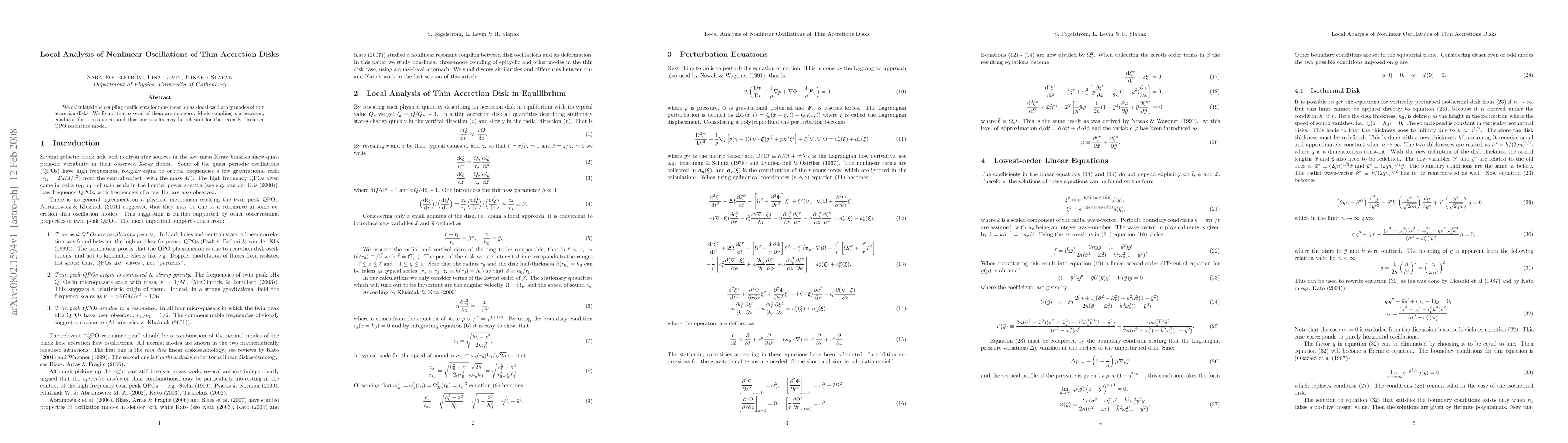 We calculated the coupling coefficients for non-linear, quasi-local oscillatory modes of thin accretion disks. We found that several of them are non-zero. Mode coupling is a necessary condition for a resonance, and thus our results may be relevant for the recently discussed QPO resonance model.