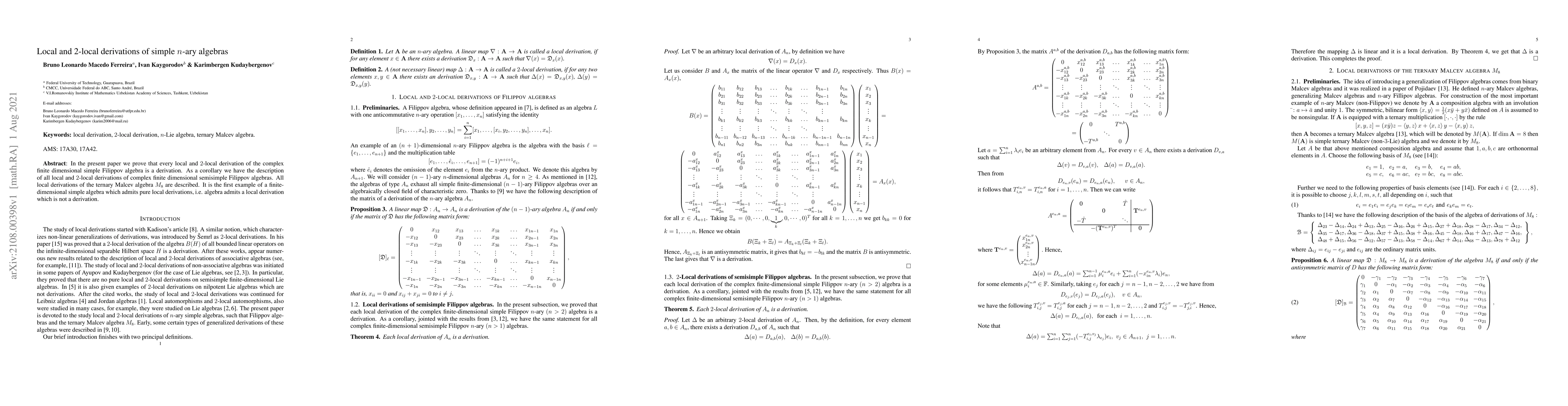 This paper proves that every local and 2-local derivation in complex finite-dimensional simple Filippov algebra is a derivation, thereby describing all such derivations in semisimple Filippov algebras. It also describes local derivations in the ternary Malcev algebra $M_8$, revealing it as the first example of a simple algebra with pure local derivations.