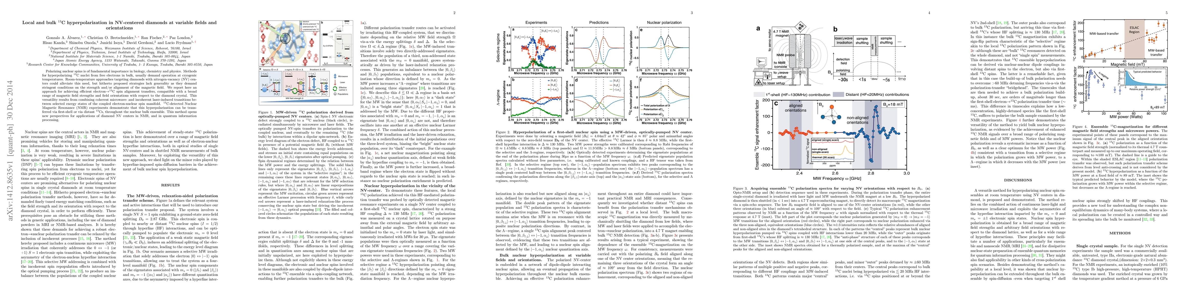 This paper presents a versatile method for hyperpolarizing 13C nuclei in NV-centered diamonds at room temperature, using a combination of microwave and laser techniques to achieve efficient electron-to-nuclear spin alignment under various magnetic field conditions. The approach enables bulk 13C hyperpolarization, promising advancements in NMR and quantum information processing.