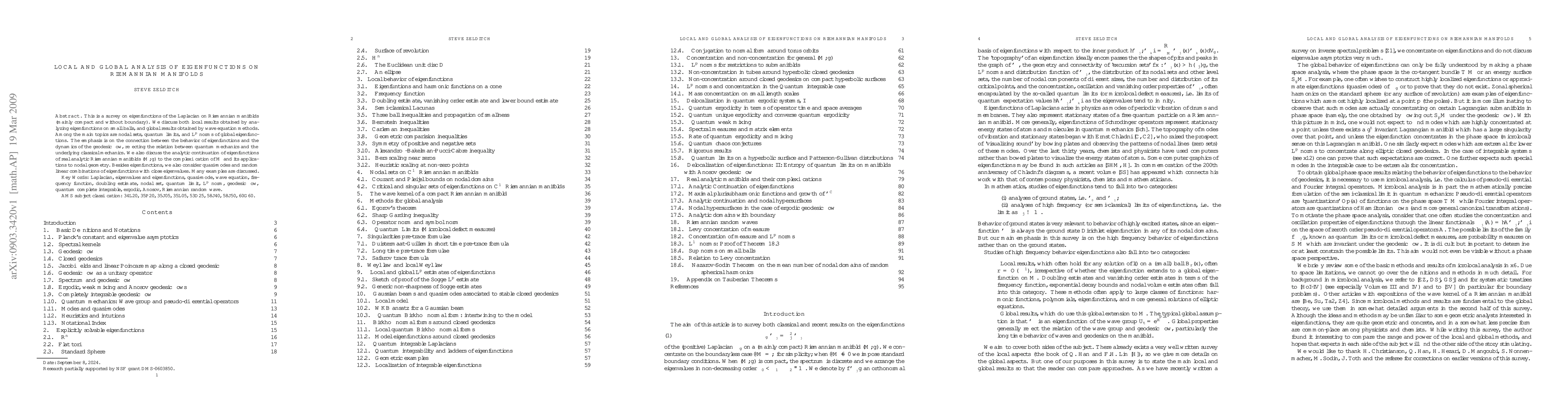 This paper surveys eigenfunctions of the Laplacian on compact Riemannian manifolds, focusing on local analyses within small balls and global results via wave equation methods. Key topics include nodal sets, quantum limits, and $L^p$ norms of eigenfunctions.