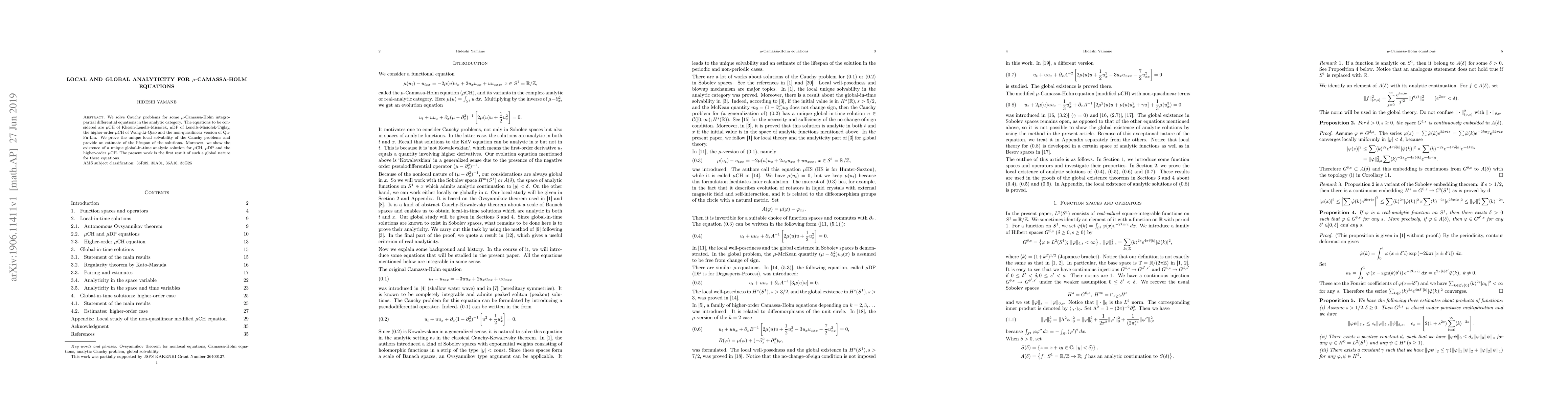 We solve Cauchy problems for some $\mu$-Camassa-Holm integro-partial differential equations in the analytic category. The equations to be considered are $\mu$CH of Khesin-Lenells-Misio\l{}ek, $\mu$DP of Lenells-Misio\l{}ek-Ti\u{g}lay, the higher-order $\mu$CH of Wang-Li-Qiao and the non-quasilinear version of Qu-Fu-Liu. We prove the unique local solvability of the Cauchy problems and provide an estimate of the lifespan of the solutions. Moreover, we show the existence of a unique global-in-time analytic solution for $\mu$CH, $\mu$DP and the higher-order $\mu$CH. The present work is the first result of such a global nature for these equations. AMS subject classification: 35R09, 35A01, 35A10, 35G25