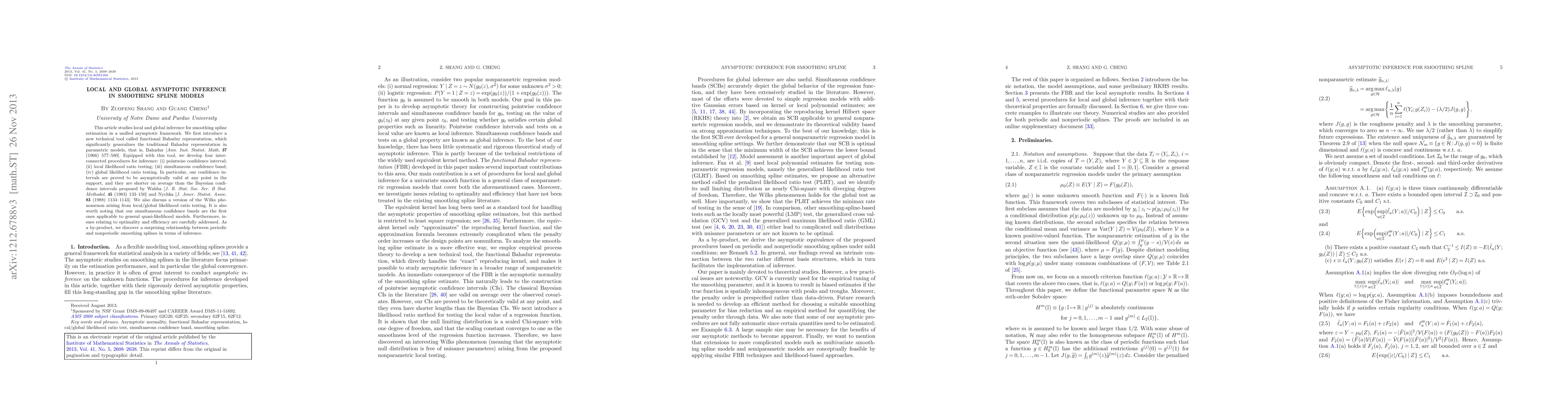 This paper develops a unified asymptotic framework for local and global inference in smoothing spline models, introducing a generalized Bahadur representation. It proposes four inference procedures, including pointwise confidence intervals and simultaneous confidence bands, which outperform existing Bayesian methods and apply to general quasi-likelihood models.