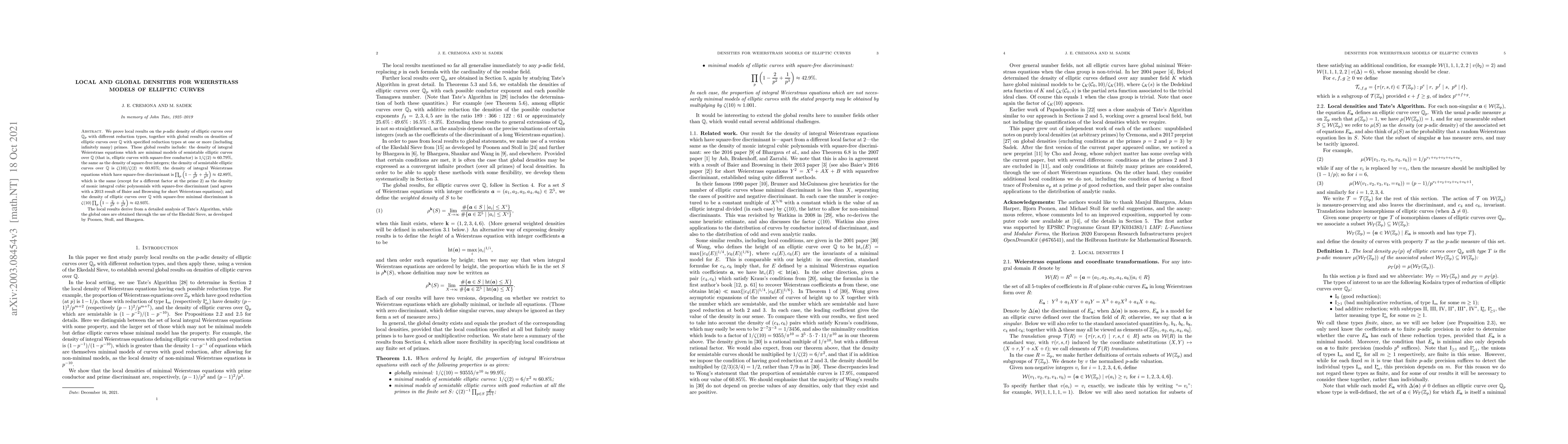 This paper proves local $p$-adic density results for elliptic curves over $\mathbb{Q}_p$ and global density results for elliptic curves over $\mathbb{Q}$ with specified reductions, including densities for semistable curves and those with square-free discriminants, calculated using Tate's Algorithm and the Ekedahl Sieve.