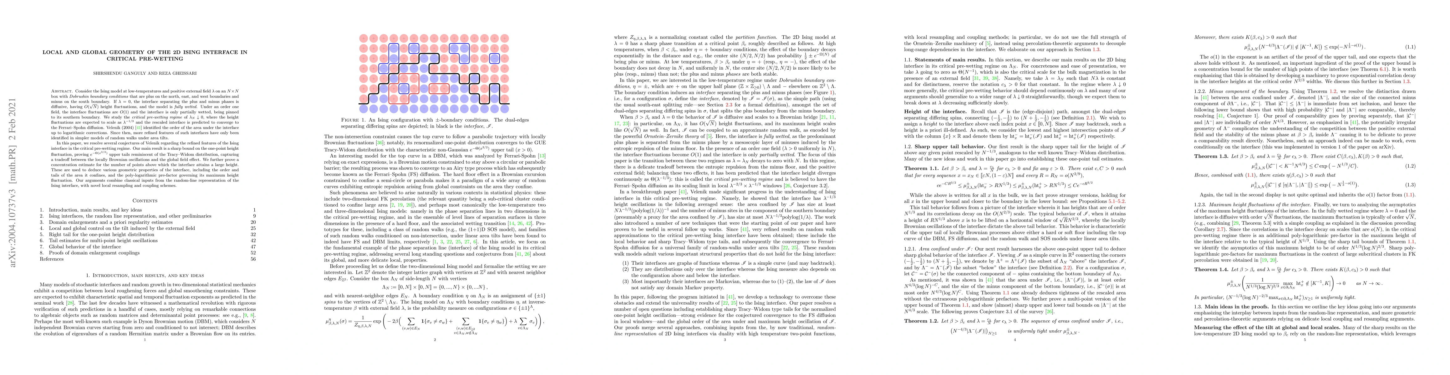 Consider the Ising model at low-temperatures and positive external field $\lambda$ on an $N\times N$ box with Dobrushin boundary conditions that are plus on the north, east, and west boundaries and minus on the south boundary. If $\lambda = 0$, the interface separating the plus and minus phases is diffusive, having $O(\sqrt N)$ height fluctuations, and the model is fully wetted. Under an order one field, the interface fluctuations are $O(1)$ and the interface is only partially wetted, being pinned to its southern boundary. We study the critical pre-wetting regime of $\lambda_N \downarrow 0$, where the height fluctuations are expected to scale as $\lambda^{ -1/3}$ and the rescaled interface is predicted to converge to the Ferrari--Spohn diffusion. Velenik (2004) identified the order of the area under the interface up to logarithmic corrections. Since then, more refined features of such interfaces have only been identified in simpler models of random walks under area tilts. In this paper, we resolve several conjectures of Velenik regarding the refined features of the Ising interface in the critical pre-wetting regime. Our main result is a sharp bound on the one-point height fluctuation, proving $e^{ - \Theta(x^{3/2})}$ upper tails reminiscent of the Tracy--Widom distribution, capturing a tradeoff between the locally Brownian oscillations and the global field effect. We further prove a concentration estimate for the number of points above which the interface attains a large height. These are used to deduce various geometric properties of the interface, including the order and tails of the area it confines, and the poly-logarithmic pre-factor governing its maximum height fluctuation. Our arguments combine classical inputs from the random-line representation of the Ising interface, with novel local resampling and coupling schemes.
