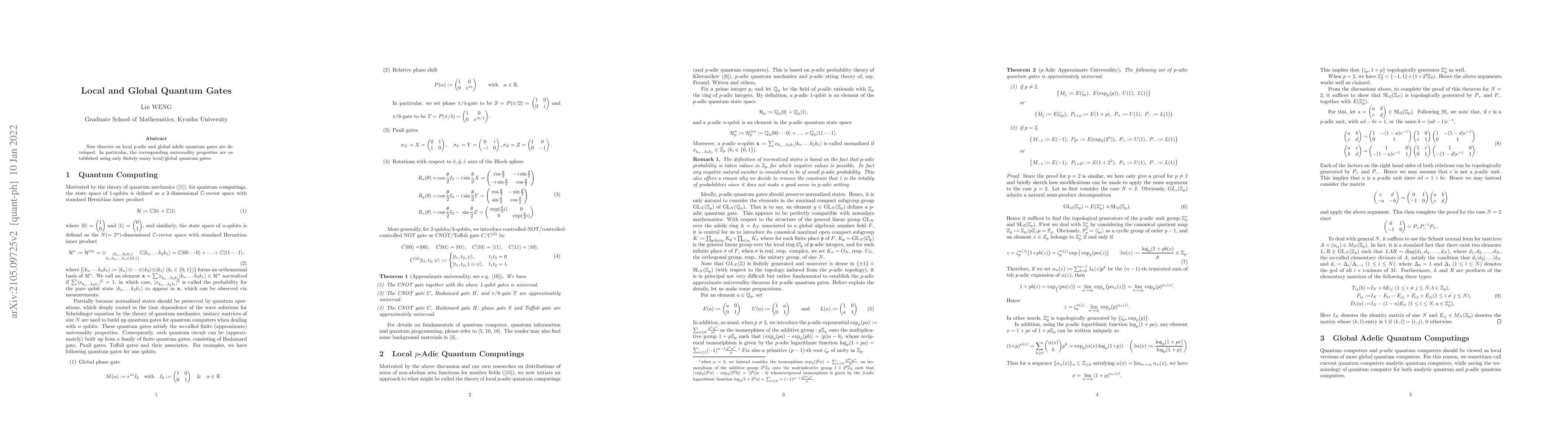 In this note, approaches towards local $p$-adic and global adelic quantum gates are proposed.