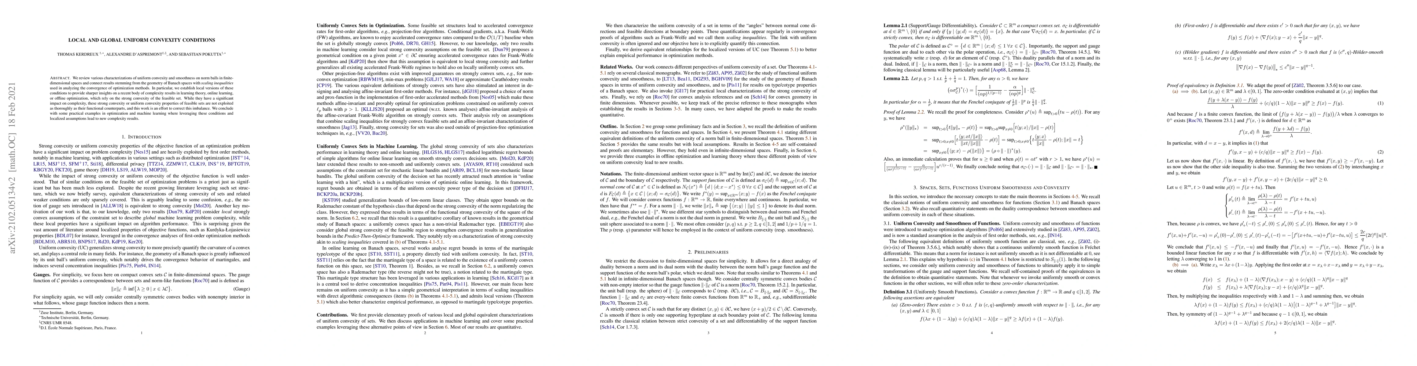 We review various characterizations of uniform convexity and smoothness on norm balls in finite-dimensional spaces and connect results stemming from the geometry of Banach spaces with \textit{scaling inequalities} used in analysing the convergence of optimization methods. In particular, we establish local versions of these conditions to provide sharper insights on a recent body of complexity results in learning theory, online learning, or offline optimization, which rely on the strong convexity of the feasible set. While they have a significant impact on complexity, these strong convexity or uniform convexity properties of feasible sets are not exploited as thoroughly as their functional counterparts, and this work is an effort to correct this imbalance. We conclude with some practical examples in optimization and machine learning where leveraging these conditions and localized assumptions lead to new complexity results.