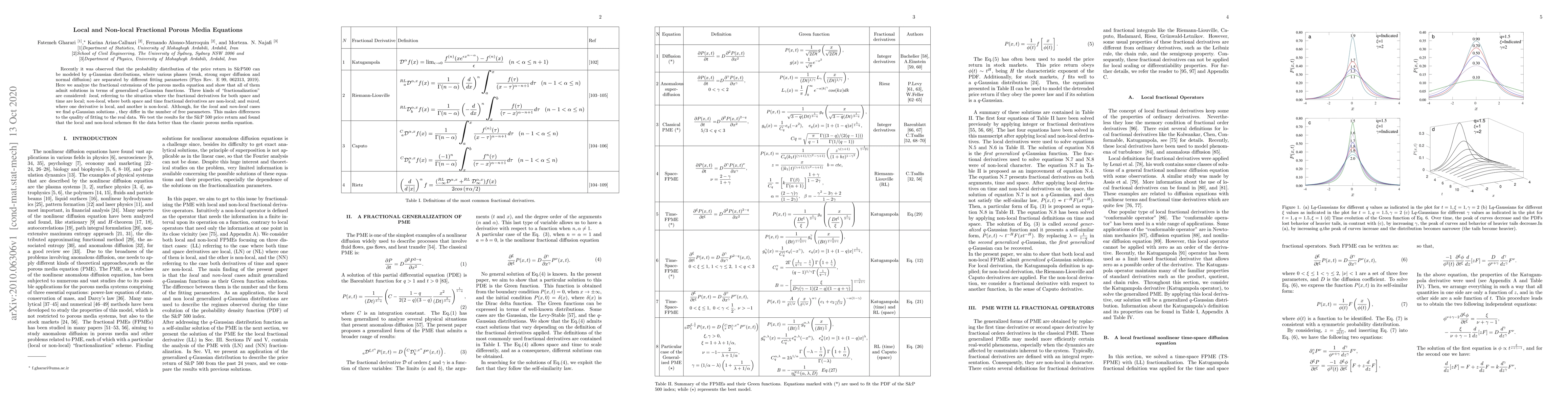 A research paper shows that fractional extensions of porous media equations admit solutions in q-Gaussian functions, improving fit to S/&P 500 price return data.