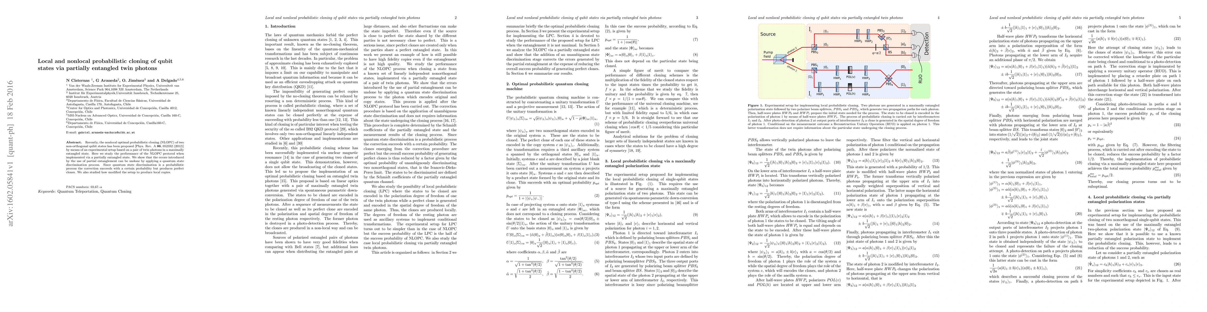 Recently, the nonlocal optimal probabilistic cloning (NLOPC) of two non-orthogonal qubit states has been proposed [Phys. Rev. A 86, 052332 (2012)] by means of an experimental setup based on a pair of twin photons in a maximally entangled state. Here we study the performance of the NLOPC protocol when implemented via a partially entangled state. We show that the errors introduced by the use of partial entanglement can be undone by applying a quantum state discrimination process. Since quantum state discrimination is a probabilistic process the correction succeeds with a certain probability but produces perfect clones. We also studied how to modified the setup to produce local copies.