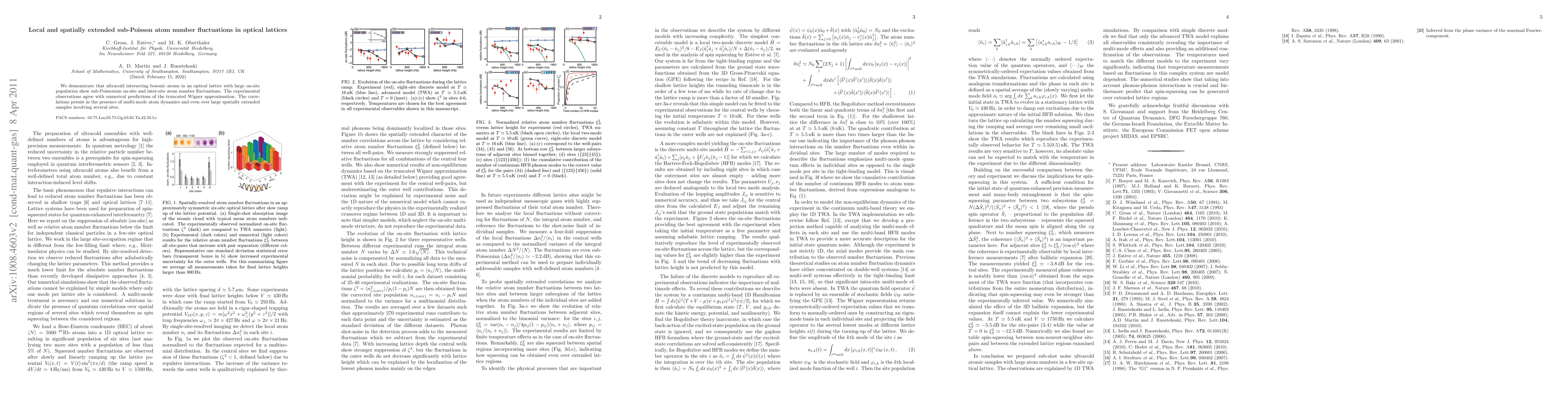 This research demonstrates sub-Poissonian atom number fluctuations in ultracold interacting bosonic atoms within optical lattices, with experimental results aligning with truncated Wigner approximation predictions, and these correlations persist across multi-mode dynamics and large spatially extended samples.
