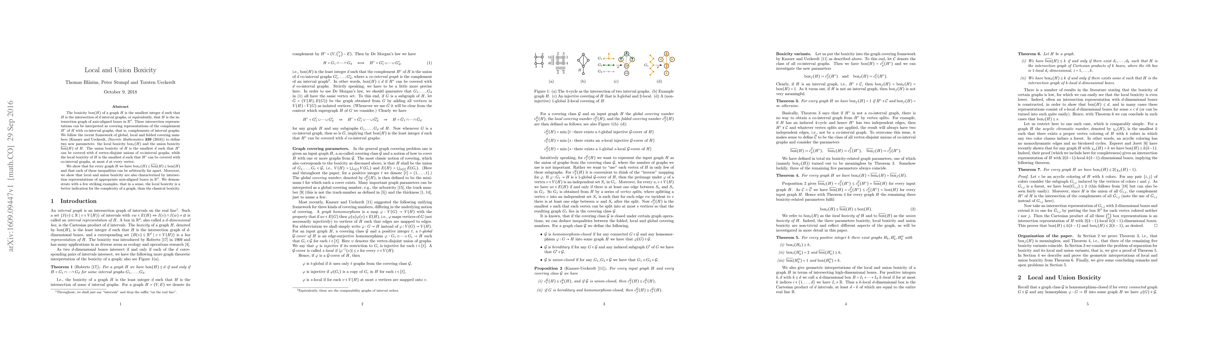 This paper introduces local boxicity $\operatorname{box}_\ell(H)$ and union boxicity $\overline{\operatorname{box}}(H)$ as new graph parameters, showing that $\operatorname{box}_\ell(H) \leq \overline{\operatorname{box}}(H) \leq \operatorname{box}(H)$ for any graph $H$. The authors argue that local boxicity may better reflect the complexity of a graph compared to classical boxicity.