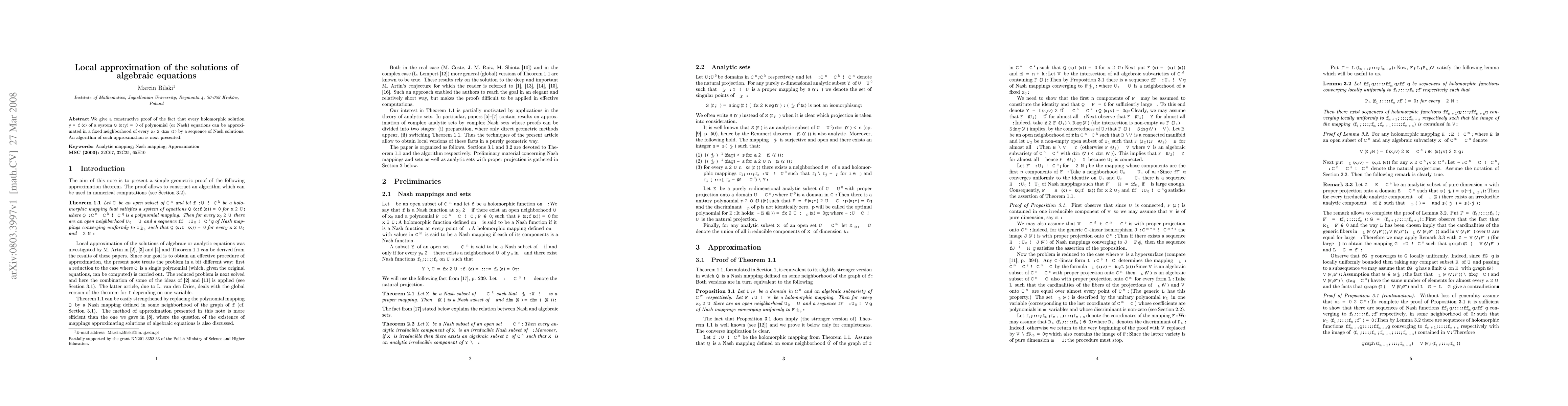 Researchers propose a method to approximate solutions of algebraic equations using holomorphic functions, offering a new approach to solving complex mathematical problems.