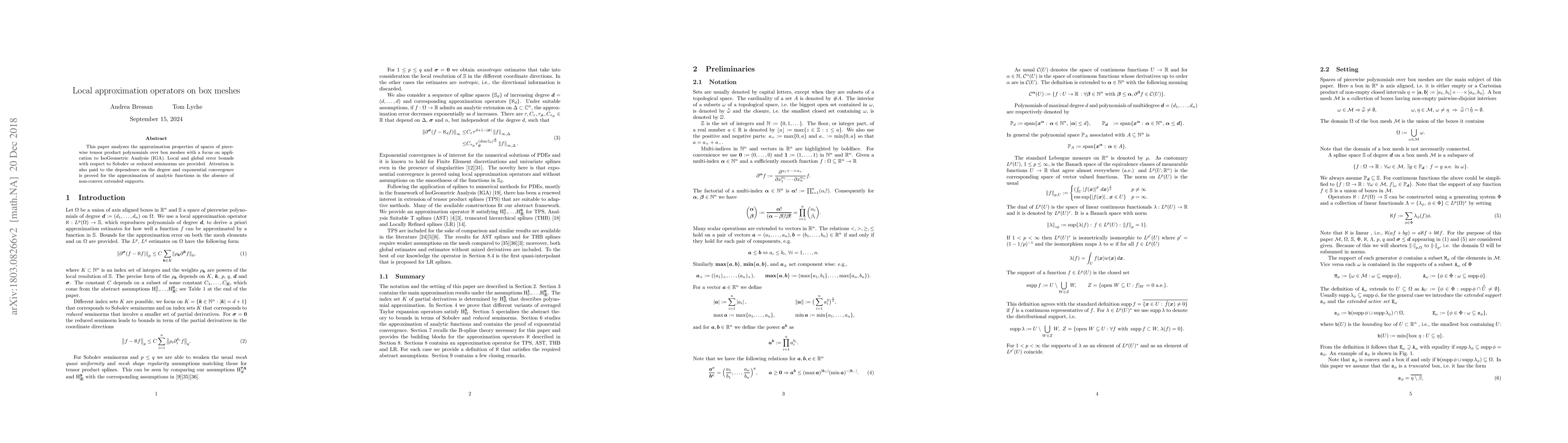 This paper analyzes the approximation properties of piece-wise tensor product polynomials over box meshes, focusing on IsoGeometric Analysis (IGA), with a focus on local and global error estimates and exponential convergence for analytic functions.
