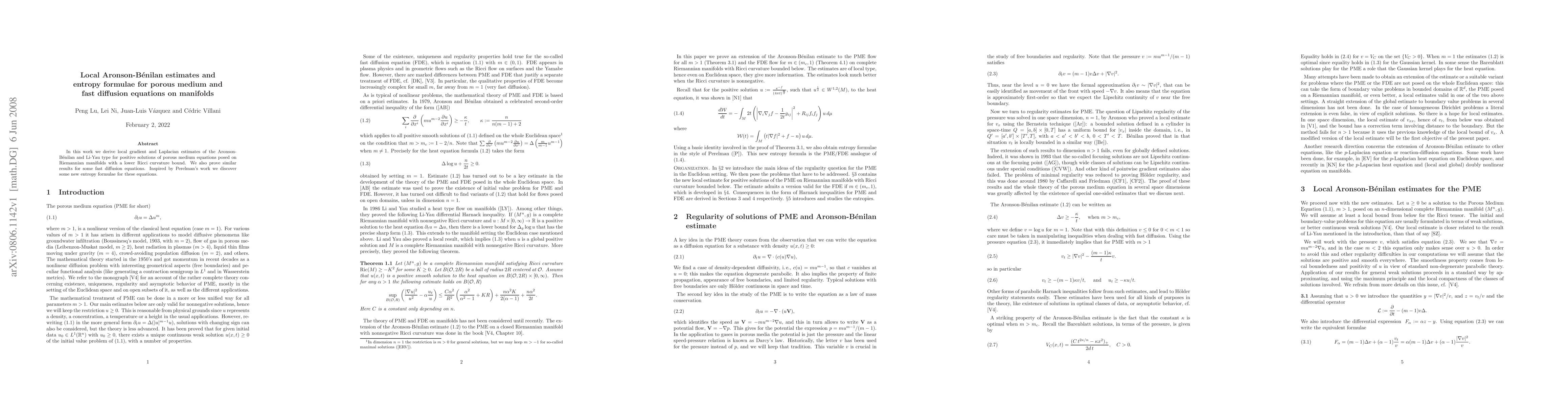This paper derives local gradient and Laplacian estimates for positive solutions of porous medium and fast diffusion equations on Riemannian manifolds with Ricci curvature bounds, and introduces new entropy formulae inspired by Perelman's work.