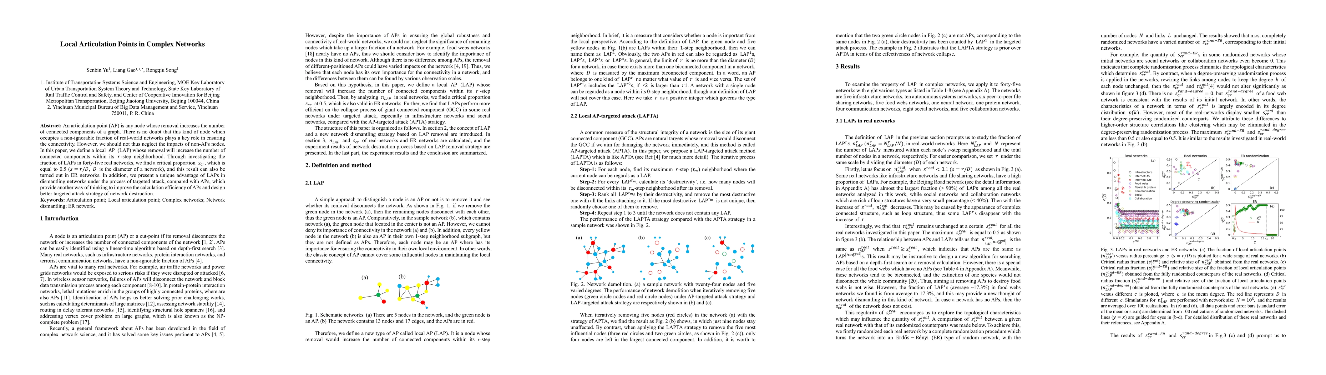 This paper introduces Local Articulation Points (LAPs) in complex networks, nodes whose removal within their r-step neighborhood increases connectivity fragments. The study finds a critical proportion (s_cr = 0.5) of LAPs in 45 real networks, also applicable to ER networks. LAPs offer a unique advantage in network dismantling under targeted attacks, suggesting improved efficiency in AP calculation and targeted attack strategies.