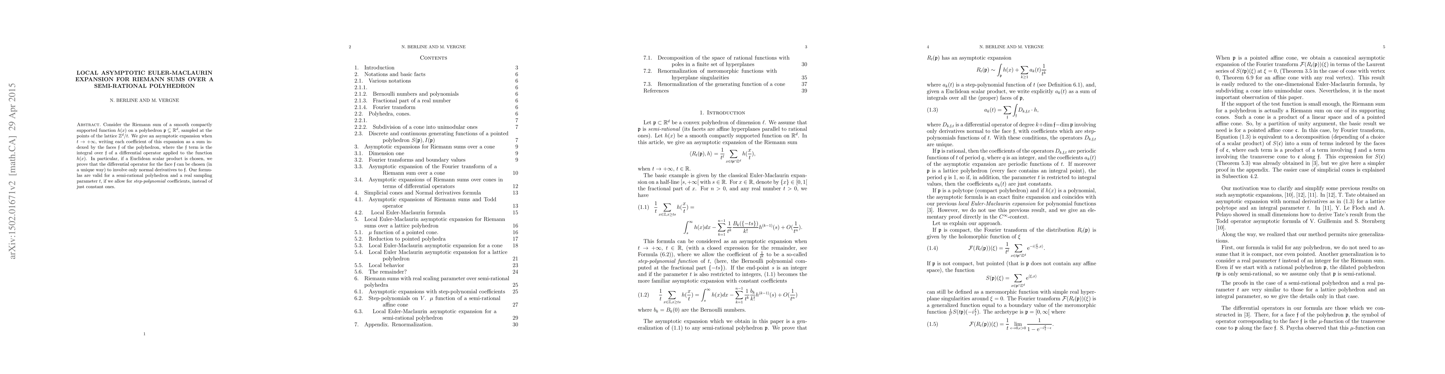 Consider the Riemann sum of a smooth compactly supported function h(x) on a polyhedron in R^d, sampled at the points of the lattice Z^d/t. We give an asymptotic expansion when t goes to infinity, writing each coefficient of this expansion as a sum indexed by the faces f of the polyhedron, where the f-term is the integral over f of a differential operator applied to the function h(x). In particular, if a Euclidean scalar product is chosen, we prove that the differential operator for the face f can be chosen (in a unique way) to involve only normal derivatives to f. Our formulas are valid for a semi-rational polyhedron and a real sampling parameter t, if we allow for step-polynomial coefficients, instead of just constant ones.