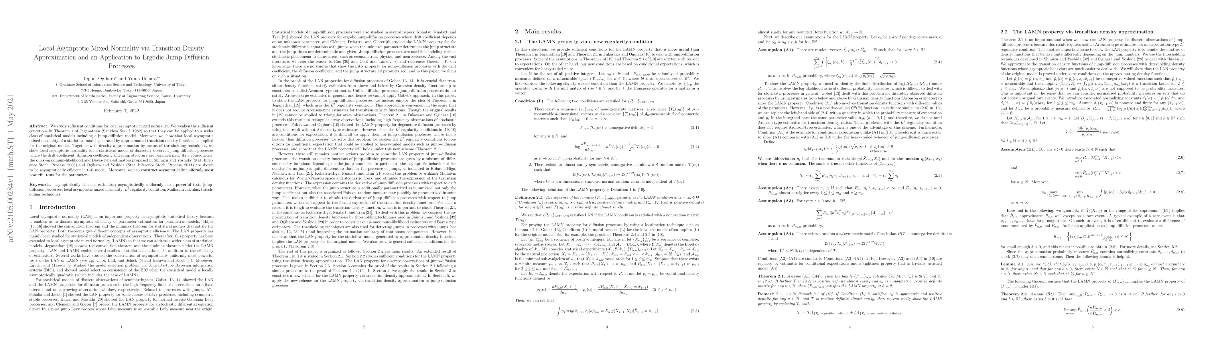 This paper establishes weakened sufficient conditions for local asymptotic mixed normality applicable to a broader range of statistical models, including jump-diffusion processes. It demonstrates that approximated transition density functions maintain local asymptotic normality for the original model, leading to the asymptotic efficiency of estimators and the construction of powerful tests.