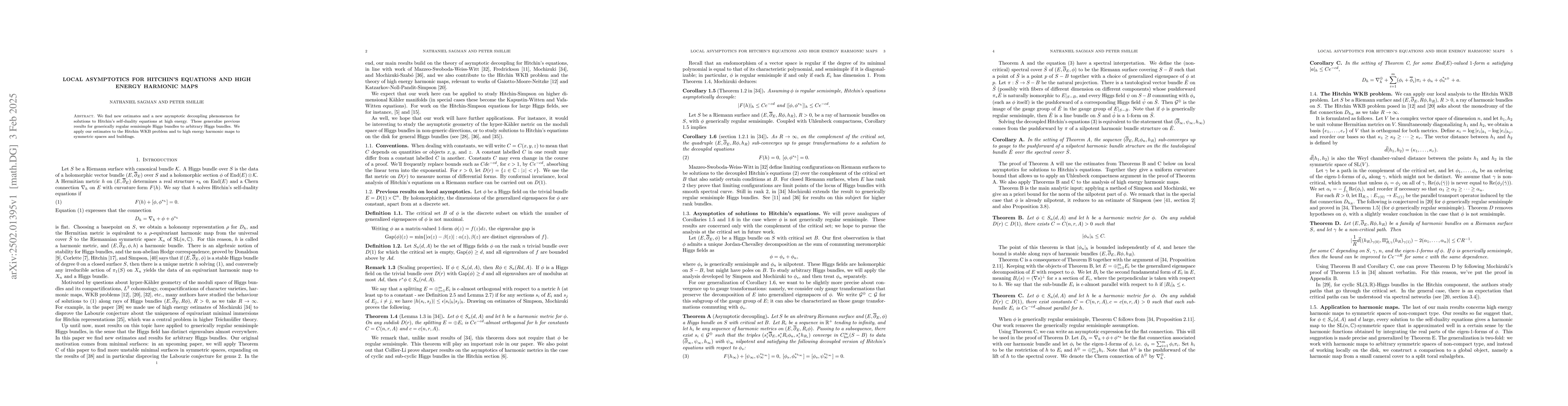 The paper introduces novel estimates and an asymptotic decoupling phenomenon for solutions to Hitchin's equations, extending previous work to arbitrary Higgs bundles.