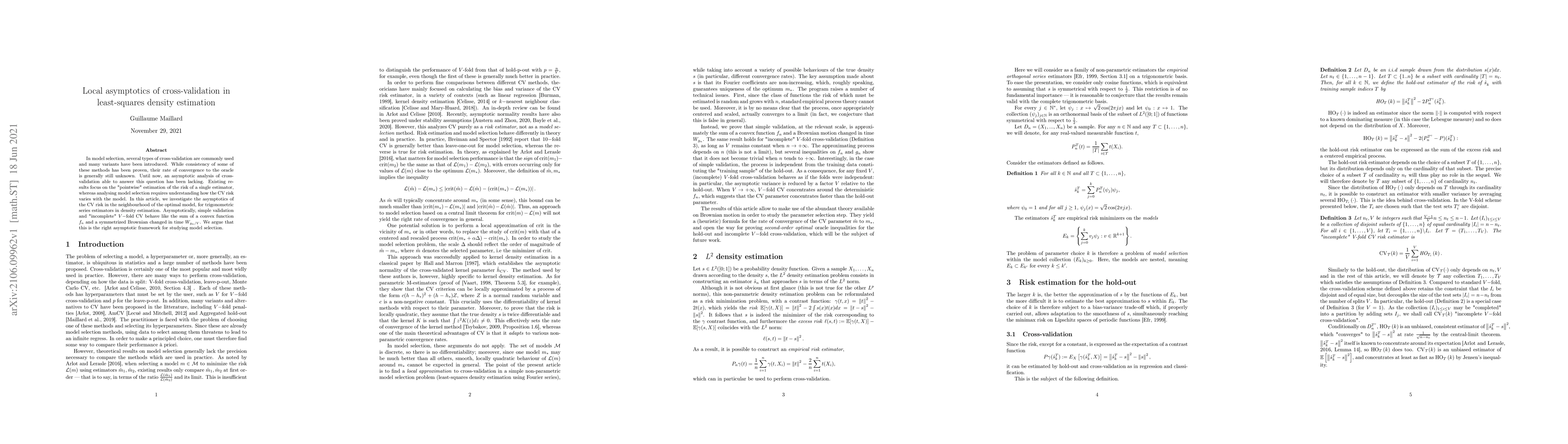 This paper investigates the local asymptotic behavior of cross-validation (CV) in least-squares density estimation, focusing on the rate of convergence near the optimal model. It finds that simple validation and incomplete V-fold CV converge to a sum of a convex function and a symmetrized Brownian bridge, providing a framework for studying model selection.