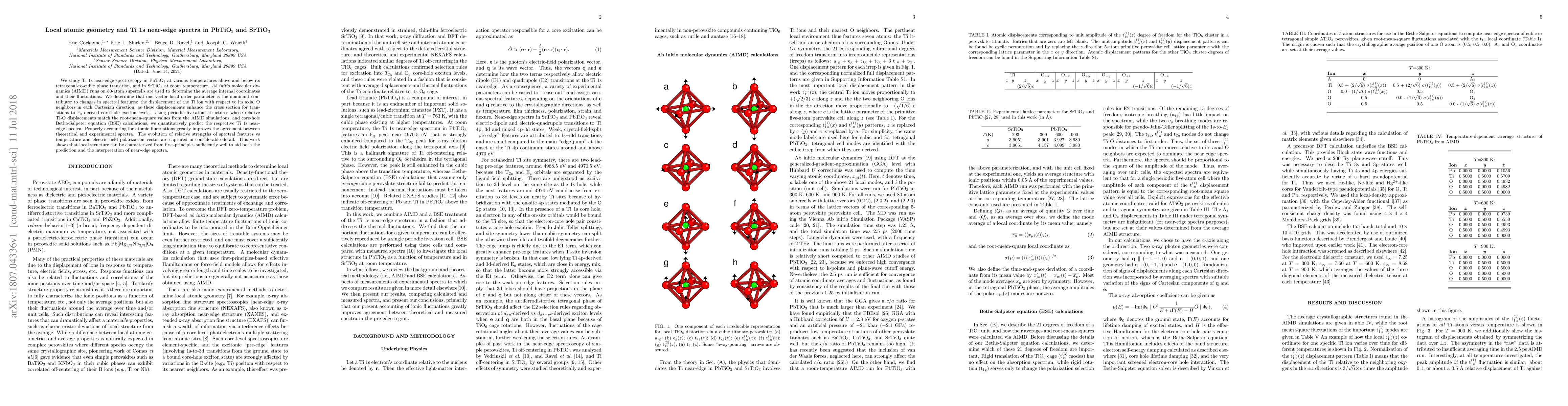 Researchers studied Ti 1s near-edge spectroscopy in PbTiO3 and SrTiO3 to understand how atomic geometry affects the spectra. They found that local structure changes significantly above a phase transition temperature, leading to distinct spectral features.