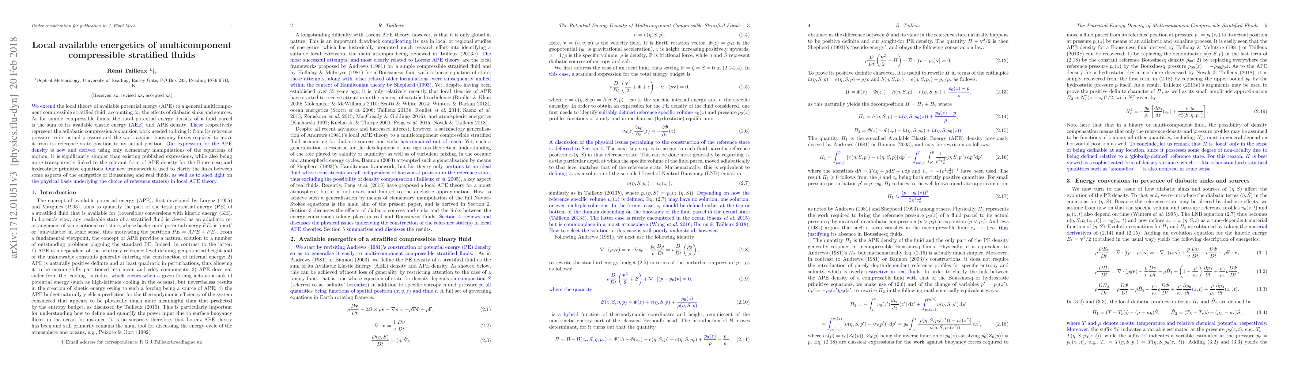 Researchers extend local theory of available potential energy to multicomponent compressible stratified fluids, accounting for diabatic sinks and sources, offering a simpler and more transparent framework for understanding fluid energetics.