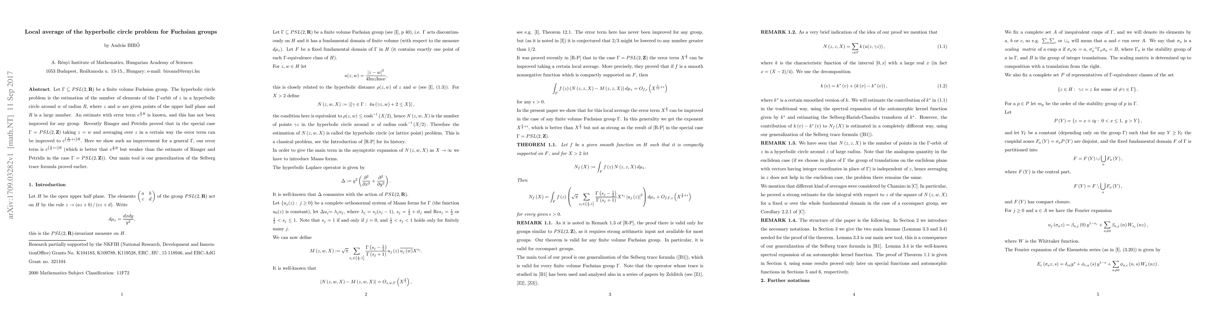 Researchers have improved an estimate for the number of elements in a Fuchsian group's orbit of a point within a hyperbolic circle, achieving a better error term than previously known, but not surpassing a specific result for PSL(2,Z).