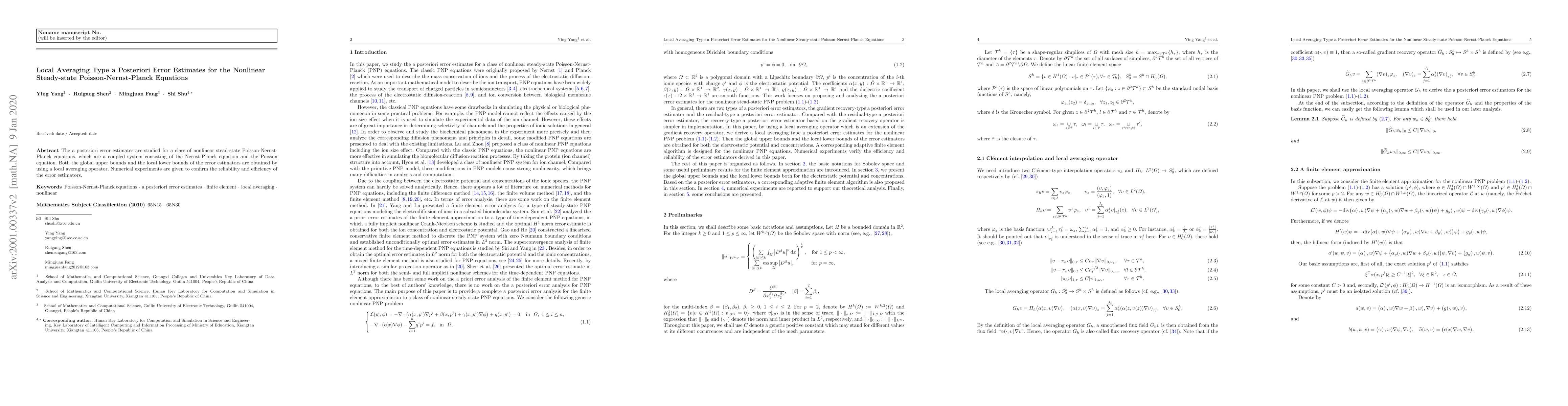 This paper develops a posteriori error estimates for nonlinear steady-state Poisson-Nernst-Planck equations using a local averaging operator to obtain both global upper and local lower bounds. Numerical experiments validate the reliability and efficiency of the proposed error estimators.