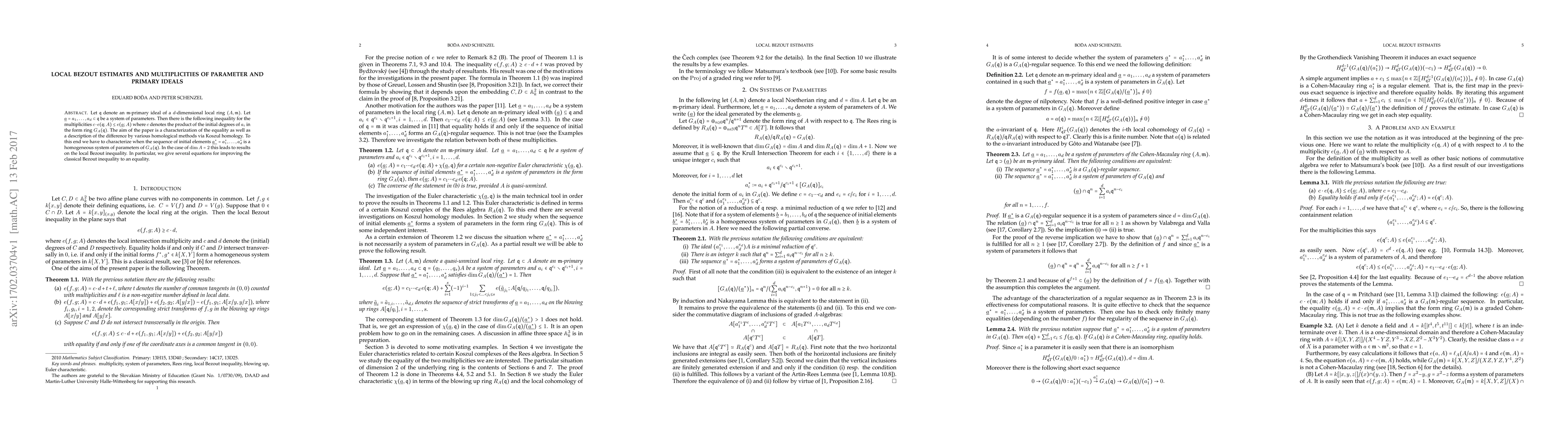 Let $\mathfrak{q}$ denote an $\mathfrak{m}$-primary ideal of a $d$-dimensional local ring $(A, \mathfrak{m}).$ Let $\underline{a} = a_1,\ldots,a_d \subset \mathfrak{q}$ be a system of parameters. Then there is the following inequality for the multiplicities $c \cdot e(\mathfrak{q};A) \leq e(\underline{a};A)$ where $c$ denotes the product of the initial degrees of $a_i$ in the form ring $G_A(\mathfrak{q}).$ The aim of the paper is a characterization of the equality as well as a description of the difference by various homological methods via Koszul homology. To this end we have to characterize when the sequence of initial elements $\underline{a^{\star}} = a_1^{\star}, \ldots,a_d^{\star}$ is a homogeneous system of parameters of $G_A(\mathfrak{q}).$ In the case of $\dim A = 2$ this leads to results on the local Bezout inequality. In particular, we give several equations for improving the classical Bezout inequality to an equality.