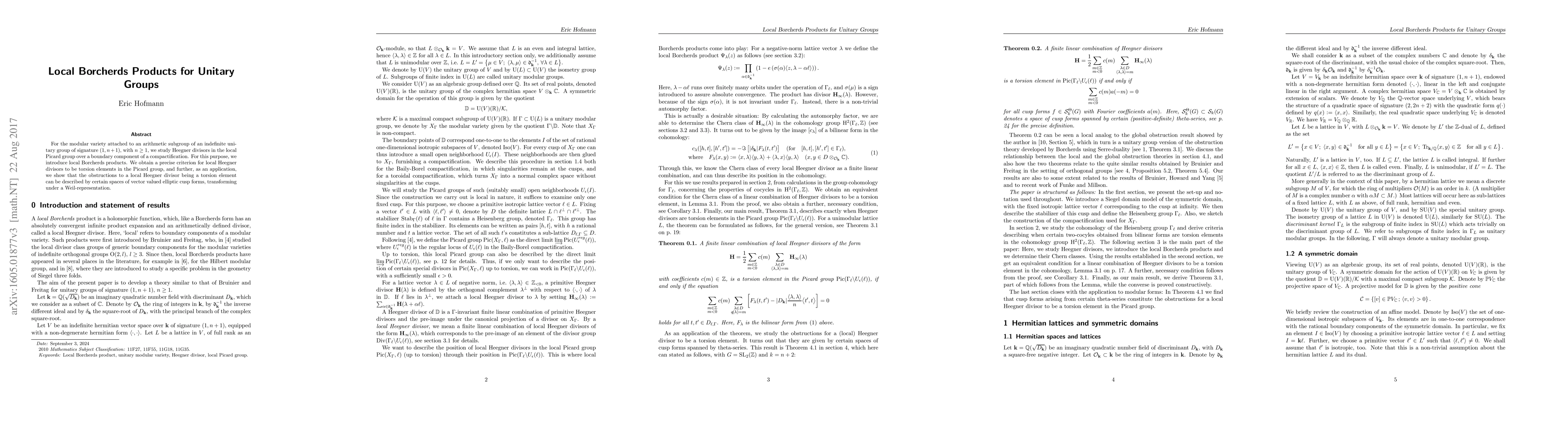 This paper investigates Heegner divisors in the local Picard group of modular varieties associated with discrete subgroups of indefinite unitary groups. It employs local Borcherds products to derive a criterion for these divisors to be torsion elements, linking them to vector-valued elliptic cusp forms and theta-series.