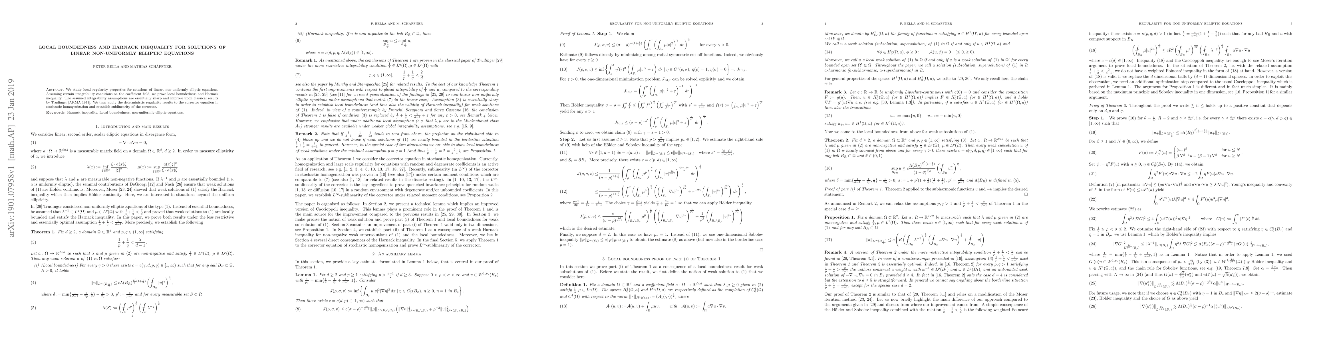 We study local regularity properties for solutions of linear, non-uniformly elliptic equations. Assuming certain integrability conditions on the coefficient field, we prove local boundedness and Harnack inequality. The assumed integrability assumptions are essentially sharp and improve upon classical results by Trudinger [ARMA 1971]. We then apply the deterministic regularity results to the corrector equation in stochastic homogenization and establish sublinearity of the corrector.